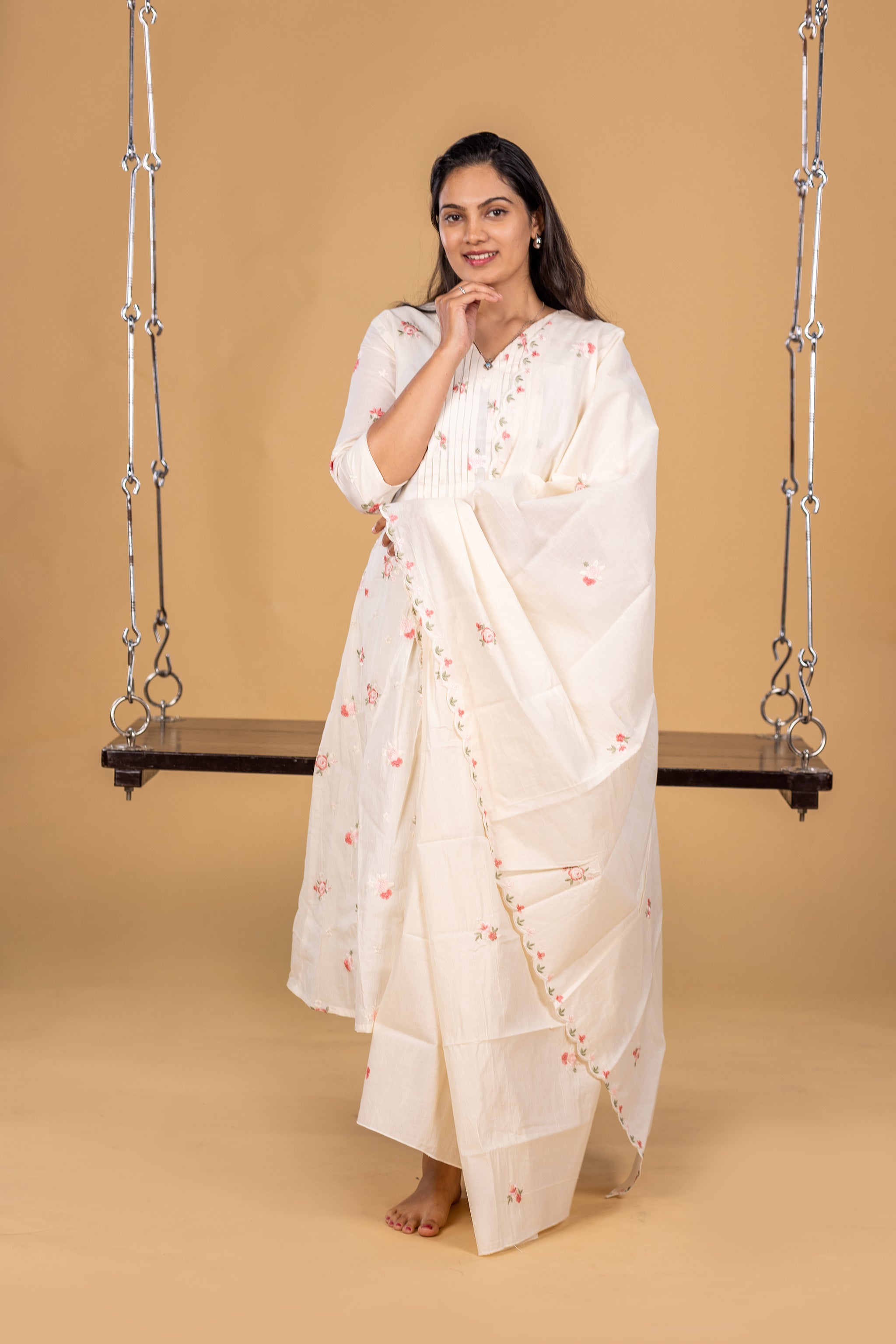 Elevate your traditional wardrobe with the Ahalya salwar set in White. This elegant ensemble features a timeless design and crisp white fabric that exudes simplicity and grace. Perfect for formal occasions or festive gatherings, it offers both comfort and style with finely tailored details suited for a refined look. Embrace understated sophistication in this classic salwar set.