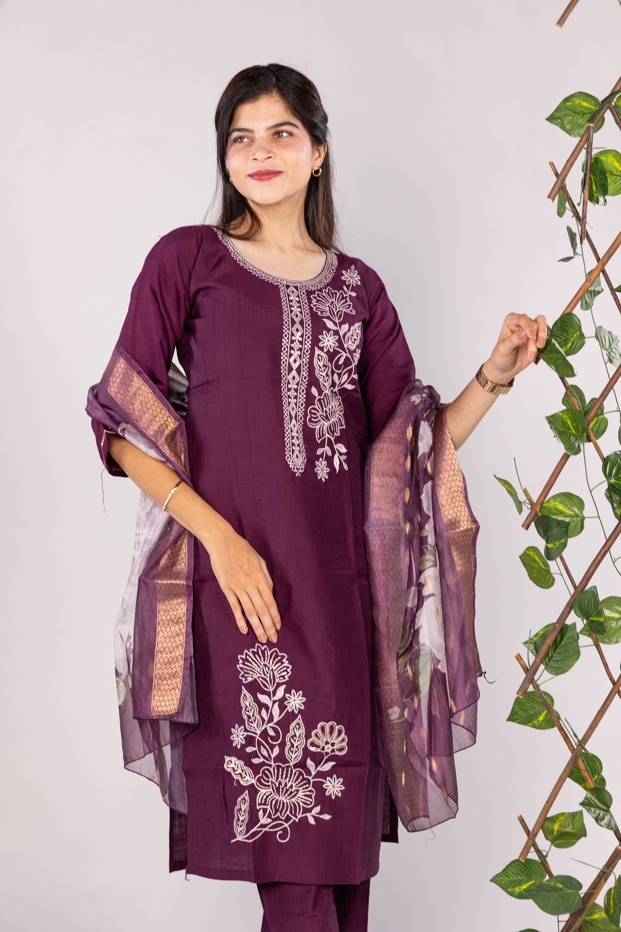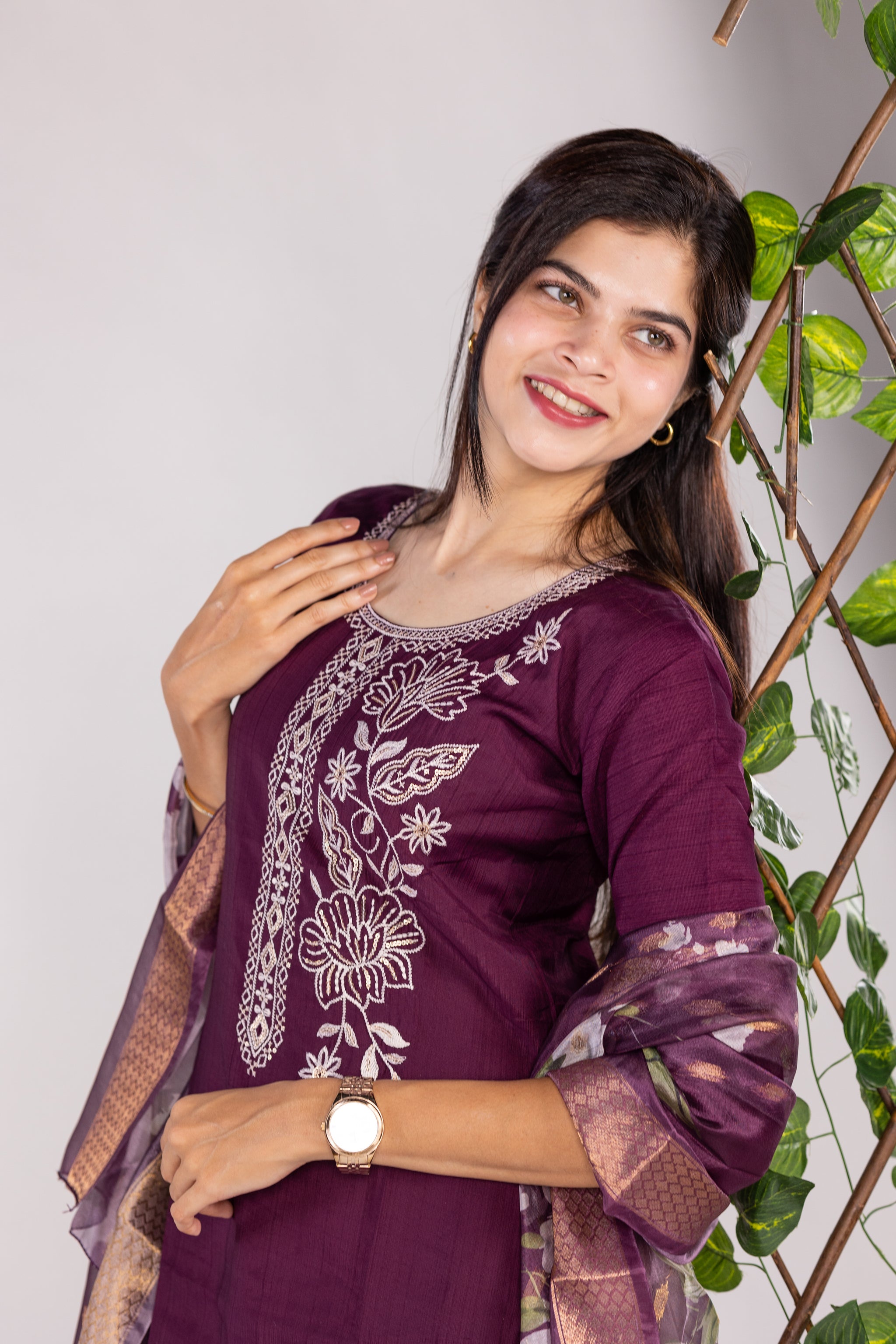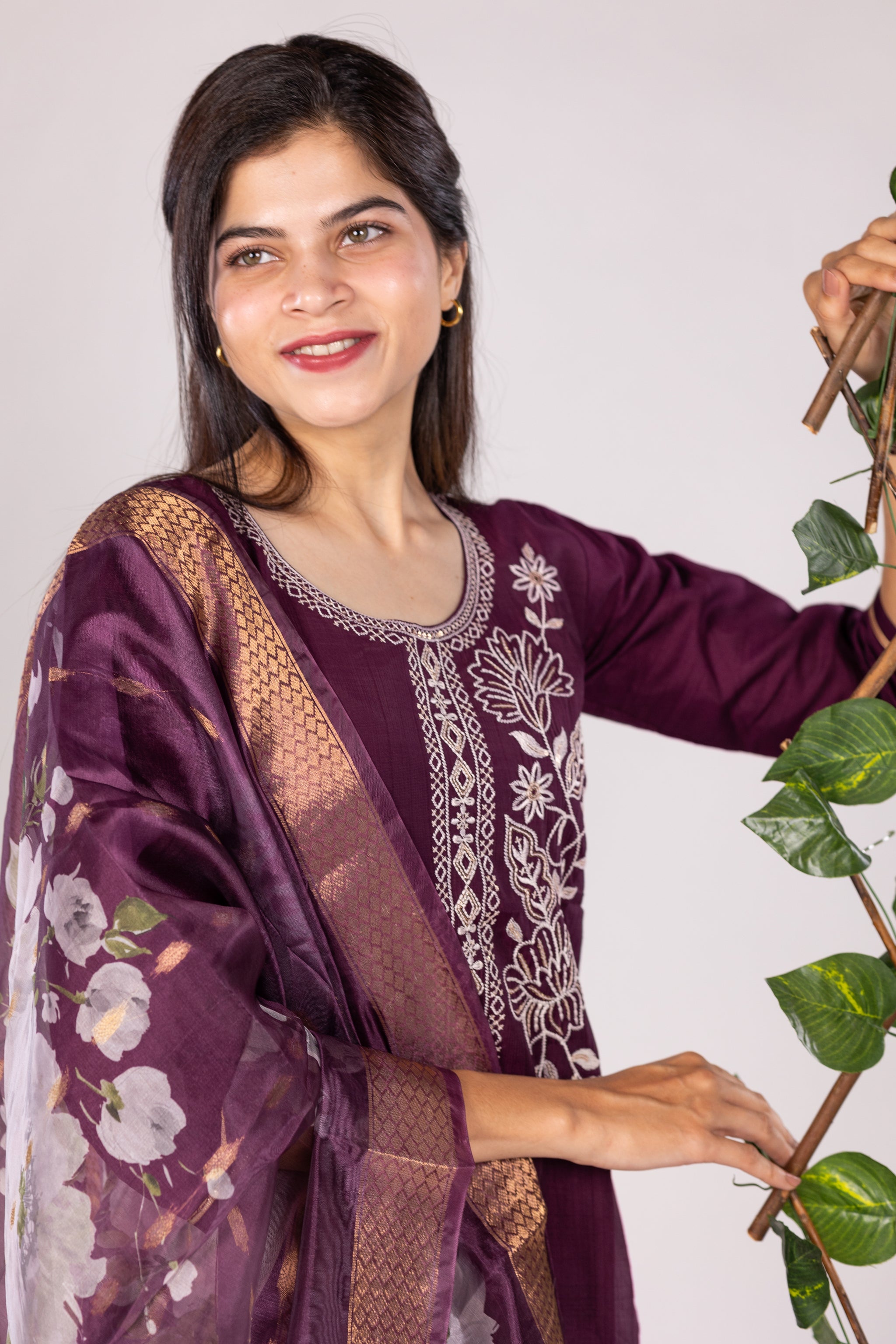 Elevate your ethnic wardrobe with this exquisite Alia salwar set in a rich purple hue. Designed to blend traditional elegance with contemporary style, the set features fine fabric that ensures comfort and grace throughout the day. Its vibrant color and refined craftsmanship make it perfect for festive occasions or sophisticated gatherings, offering a timeless look that complements your poise effortlessly.