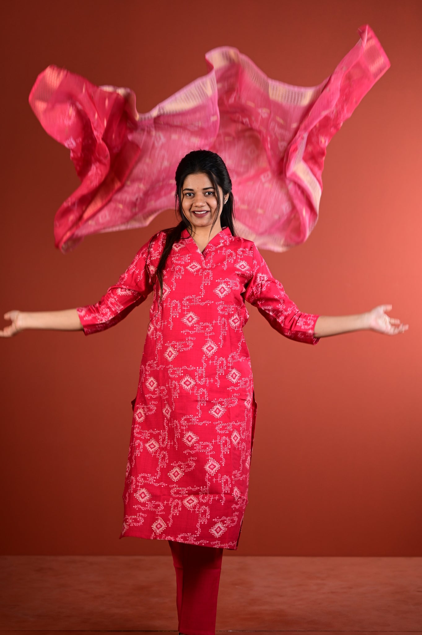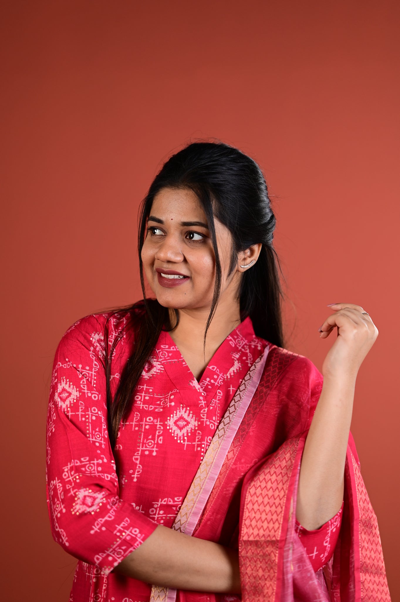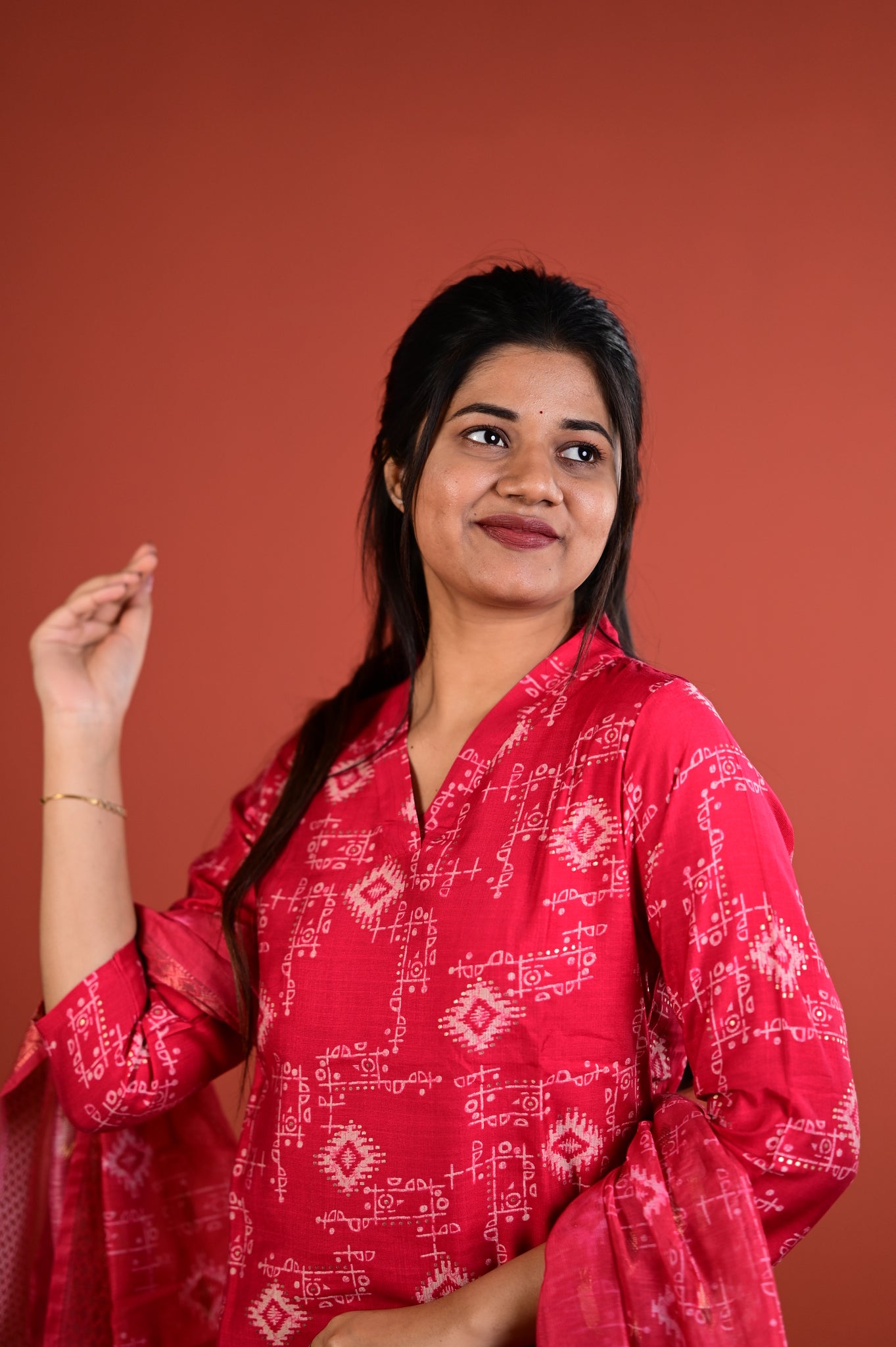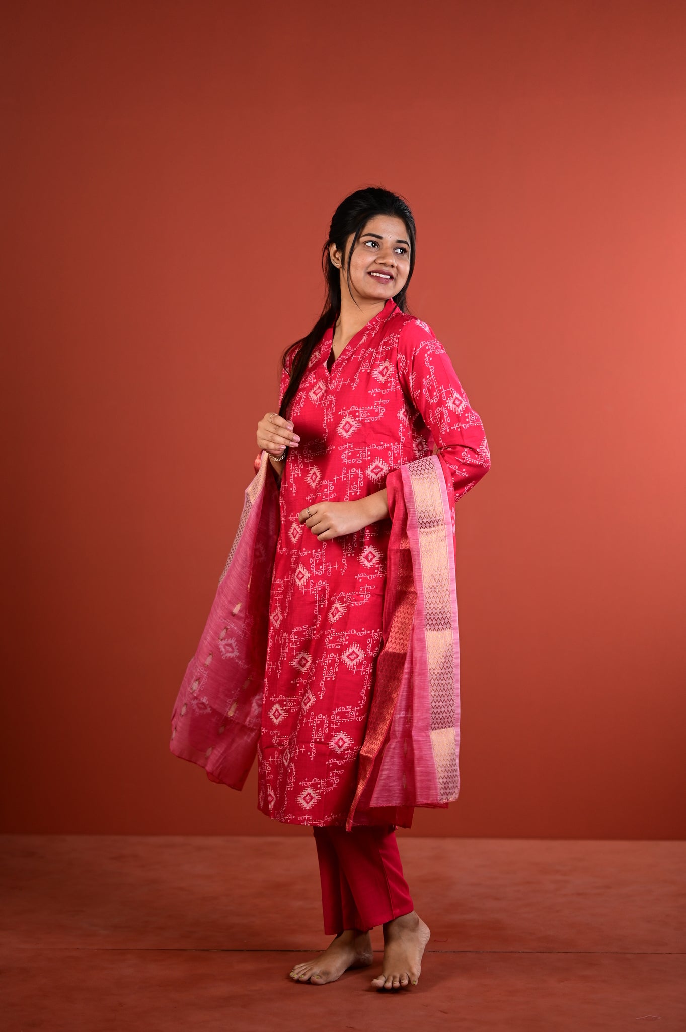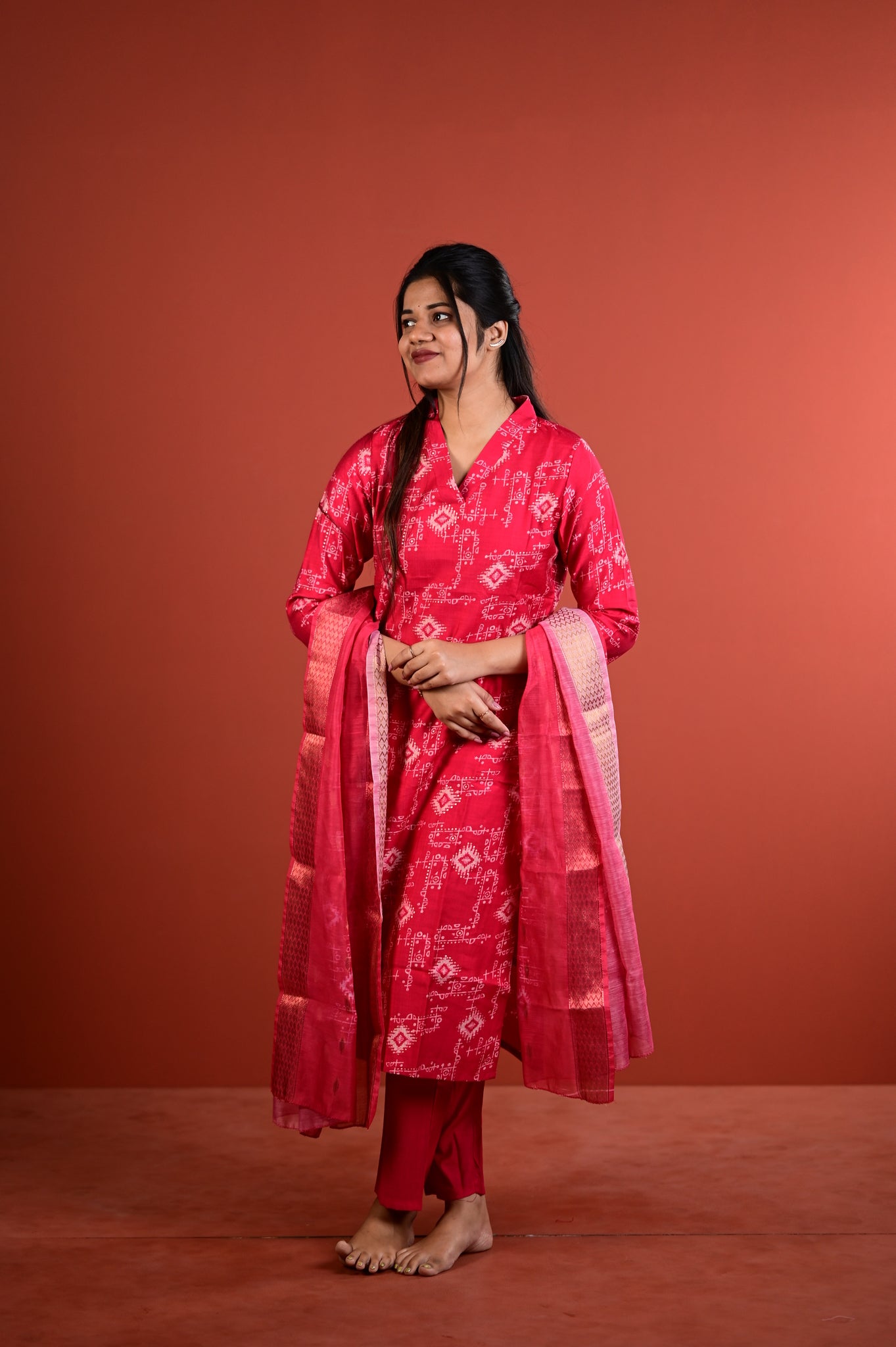 This refined ensemble features the muted sophistication of sage red, a shade that exudes understated luxury and versatility. Crafted with meticulous attention to detail, the Dharshini collection embodies the timeless artistry of Indian silks, making it an ideal choice for festive occasions, celebrations, or refined everyday wear.Â