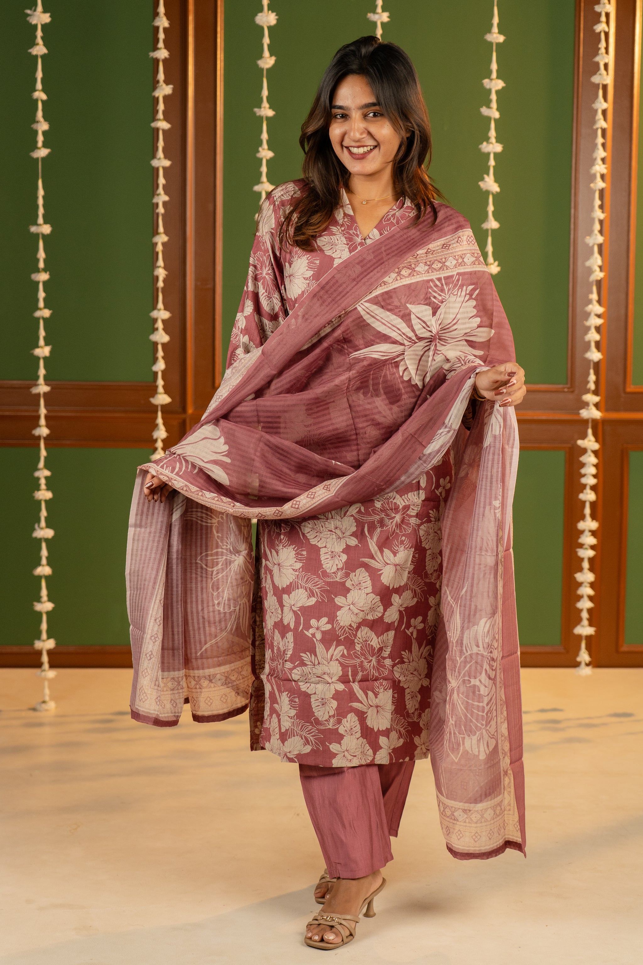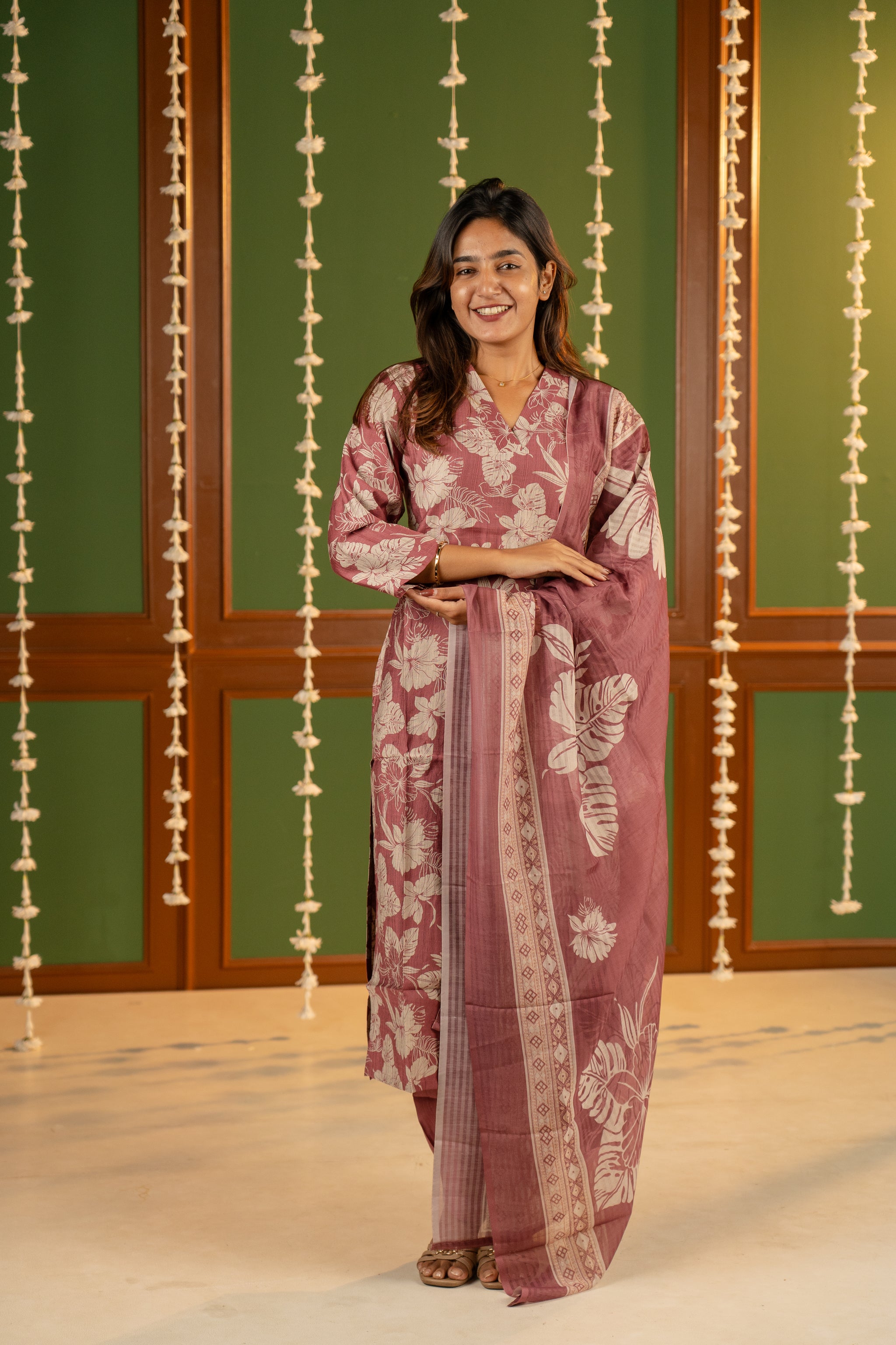 The Iraaya salwar set in peach offers a perfect blend of subtlety and elegance. Its soft peach tone creates a serene and polished look, suitable for formal occasions and festive events alike. Crafted with attention to detail, this set provides a comfortable fit while enhancing your natural grace. A refined choice for those who value timeless sophistication in traditional attire.