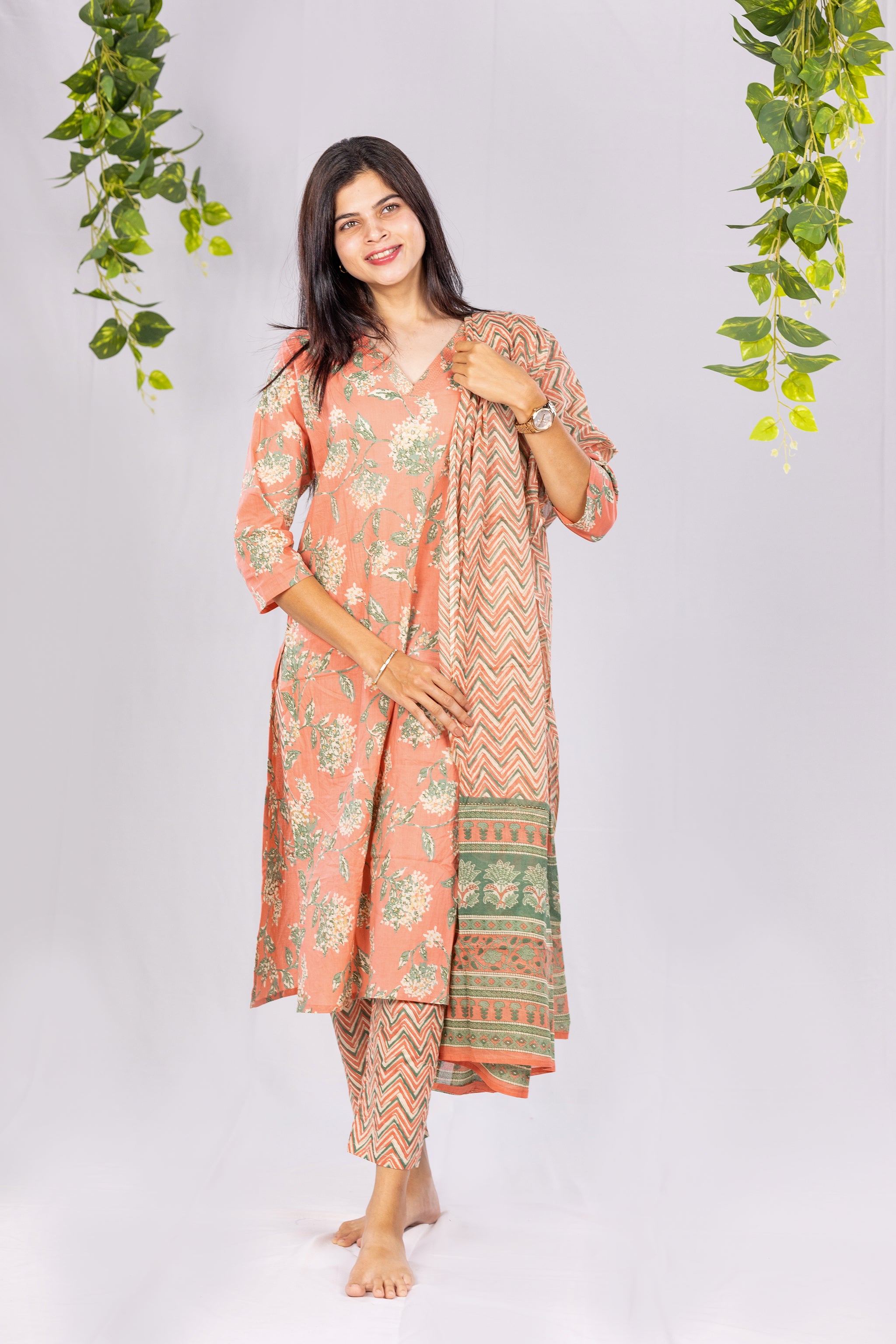 Elevate your ethnic wardrobe with the Meera salwar set in delicate baby pink. Crafted for comfort and style, this set features a graceful silhouette that complements any occasion. Its subtle hue enhances elegance, while the soft fabric ensures ease throughout the day. Perfect for celebrations or casual gatherings, this salwar set blends tradition with refined simplicity.