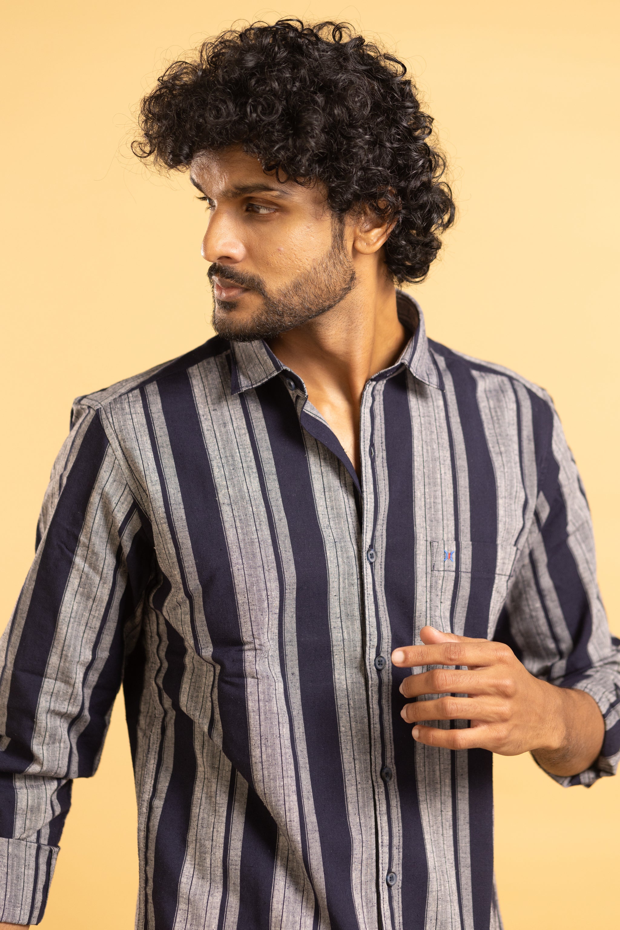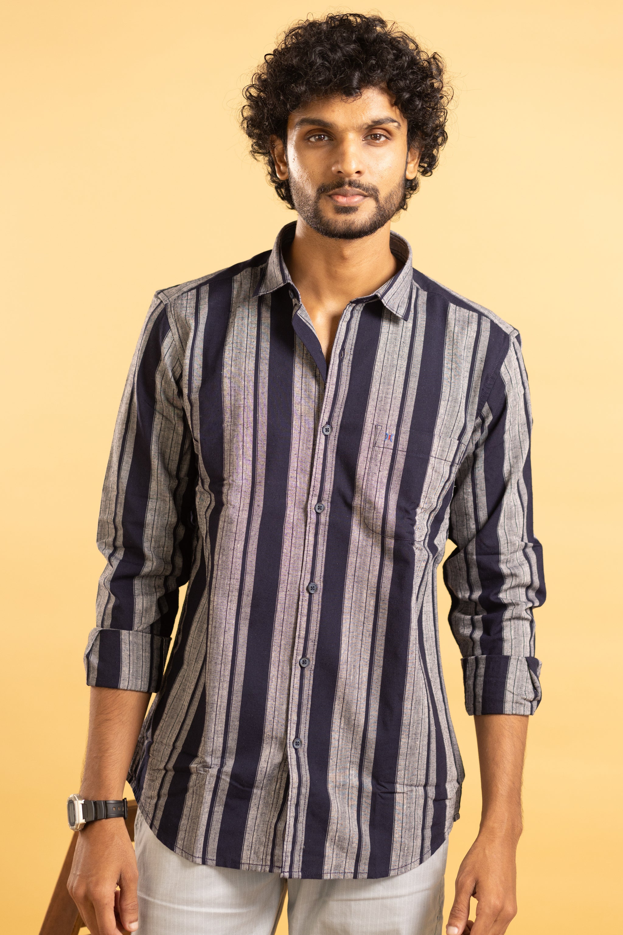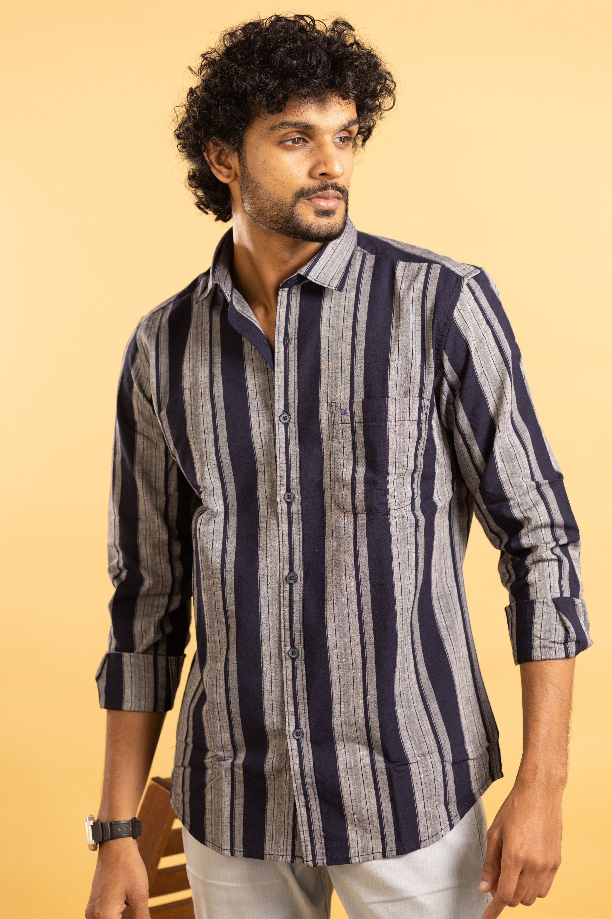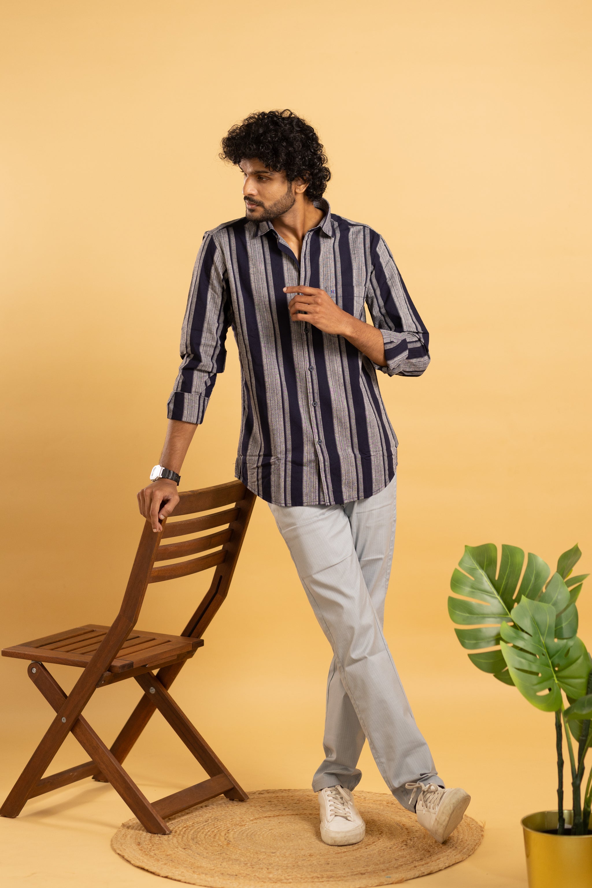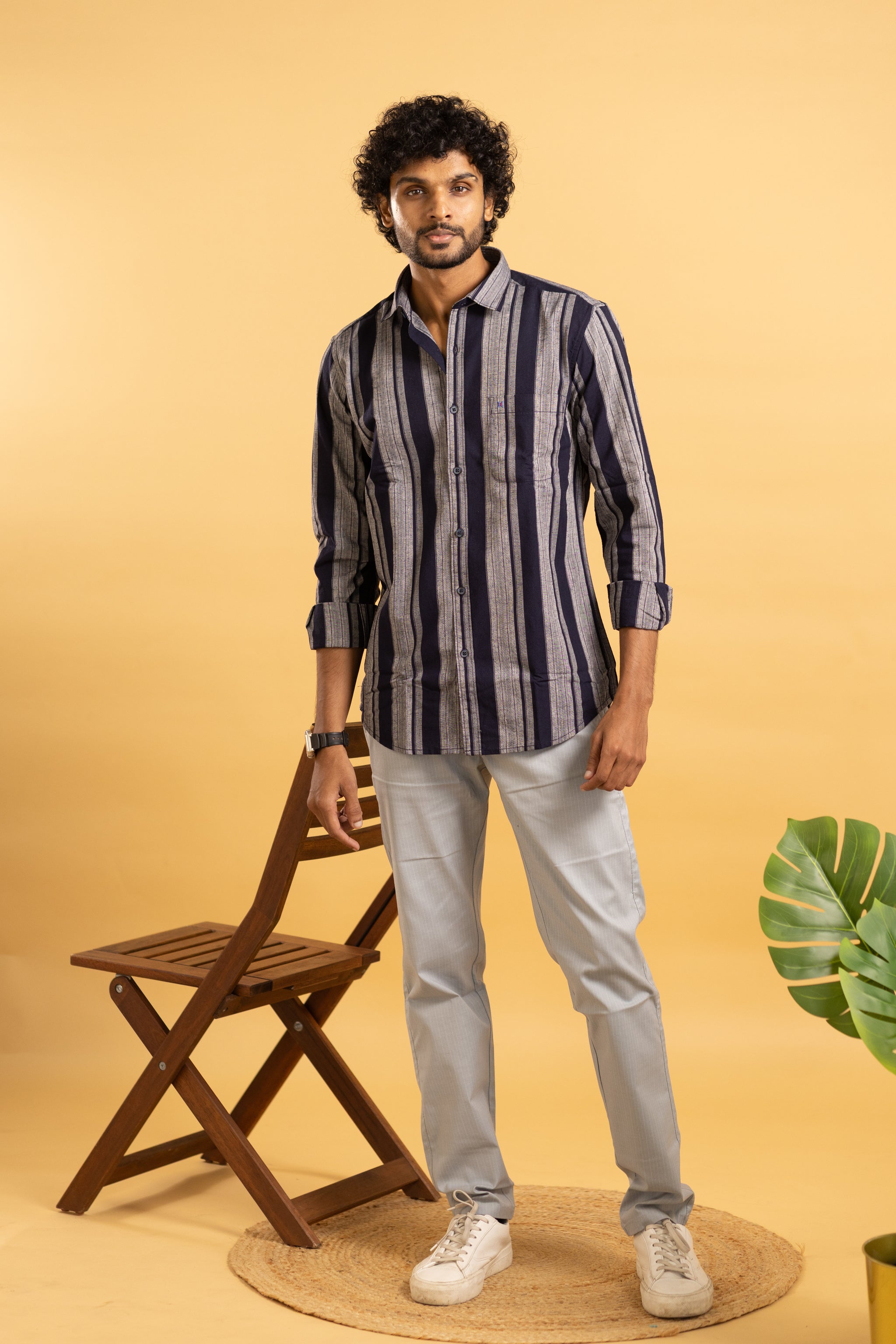 Elevate your wardrobe with this men's full sleeve checked shirt in a refined blue hue. Crafted for a tailored fit, it combines classic patterns with modern sophistication, perfect for both office wear and casual outings. The breathable fabric ensures comfort throughout the day, while the timeless check design adds a subtle yet polished touch to your look.