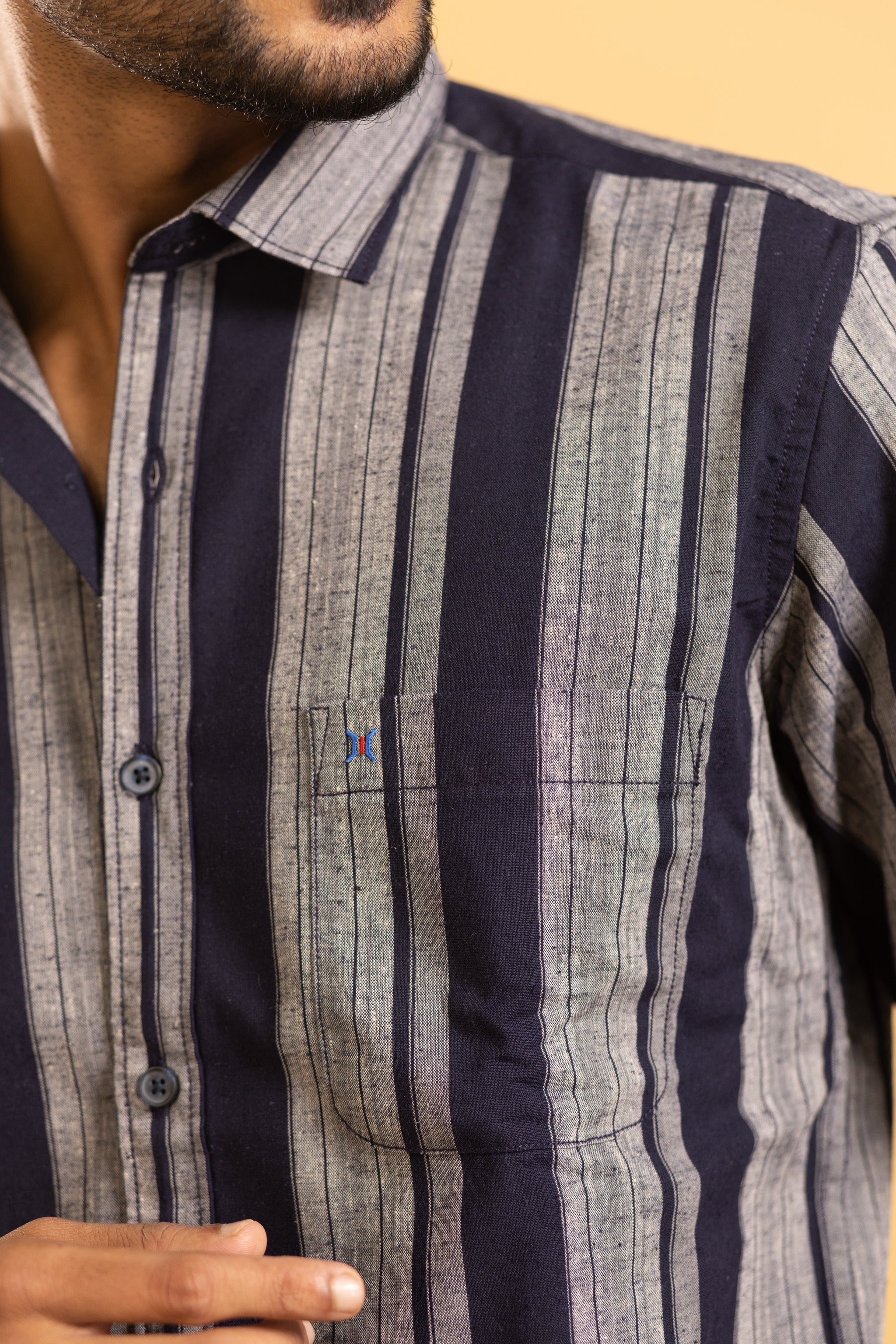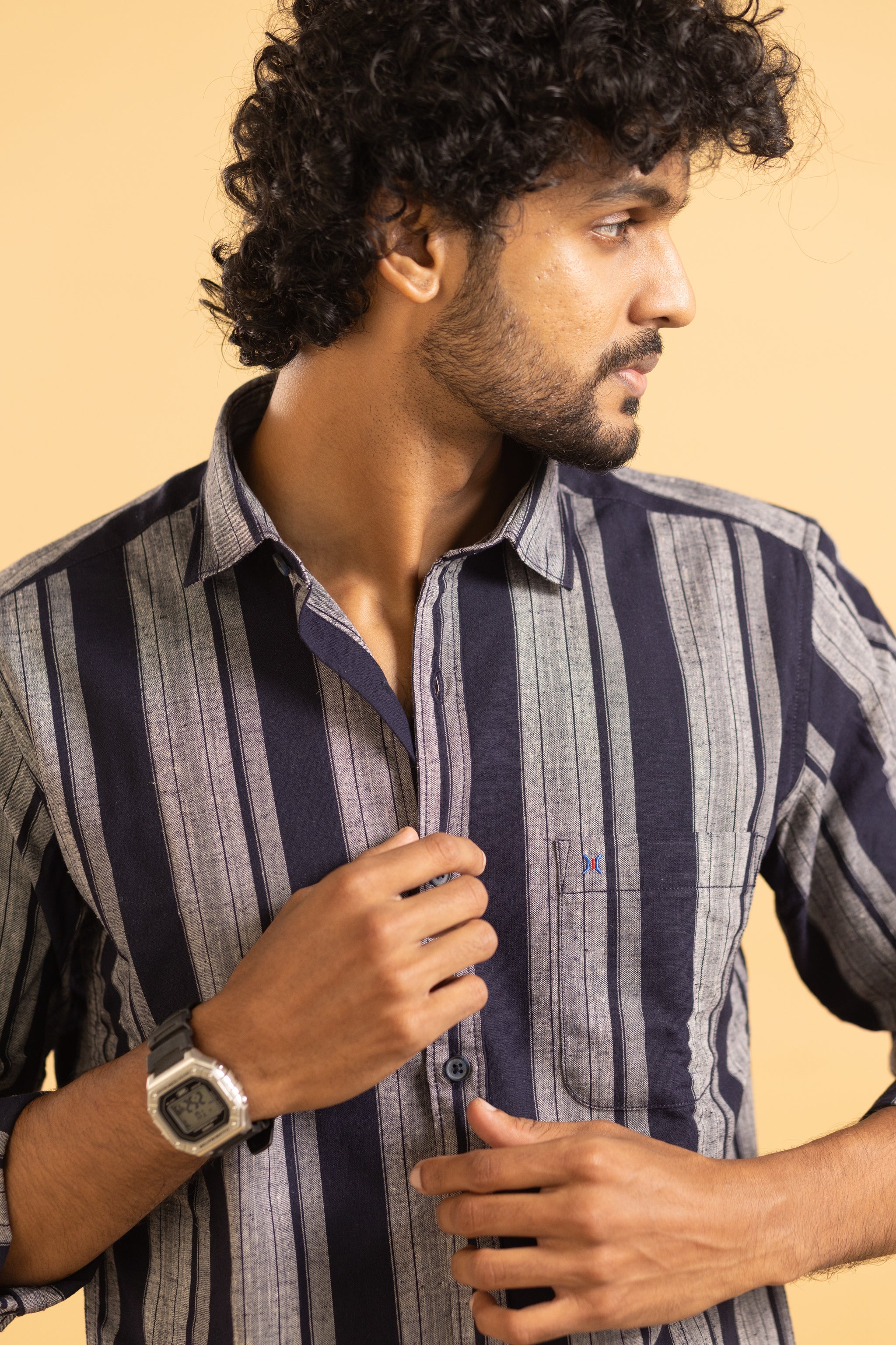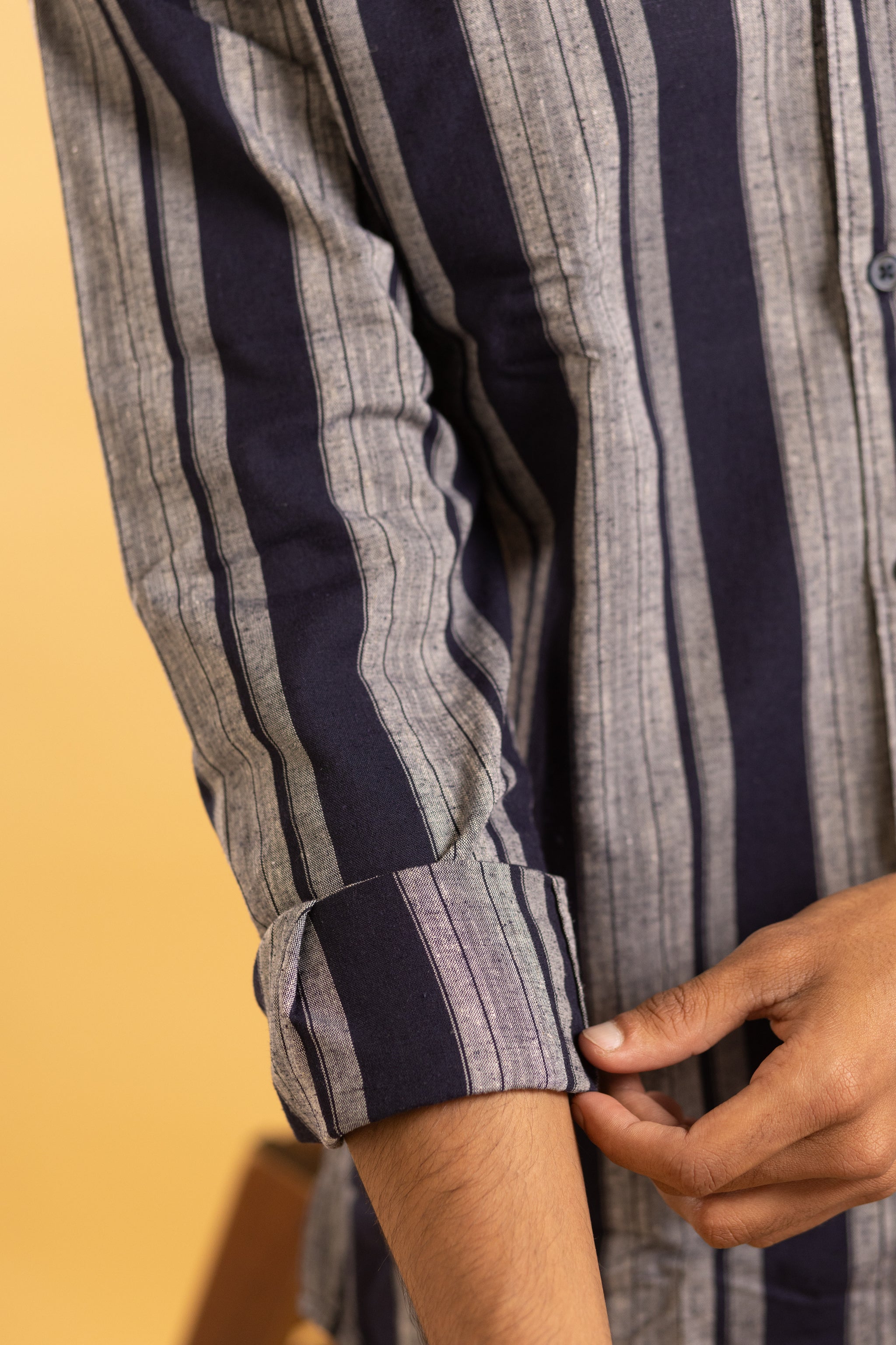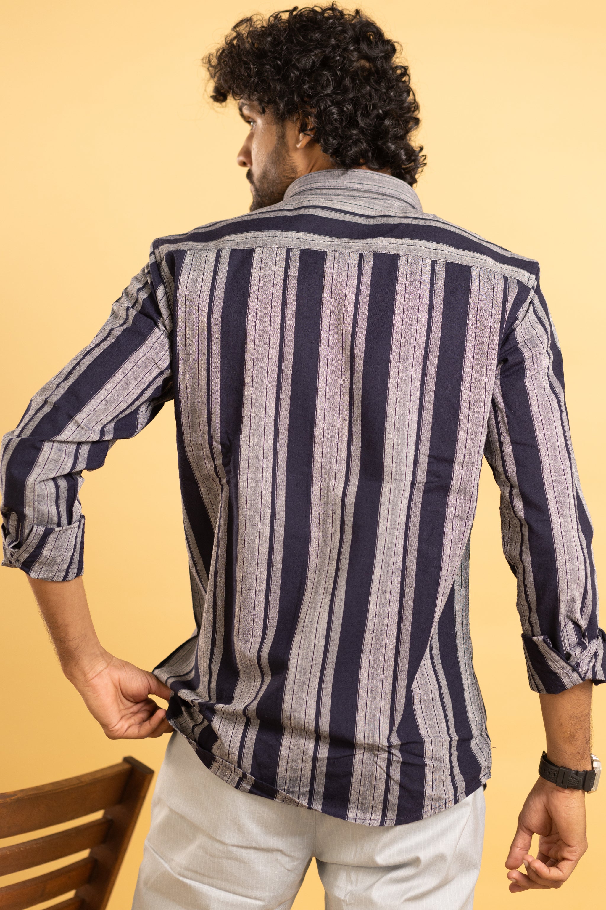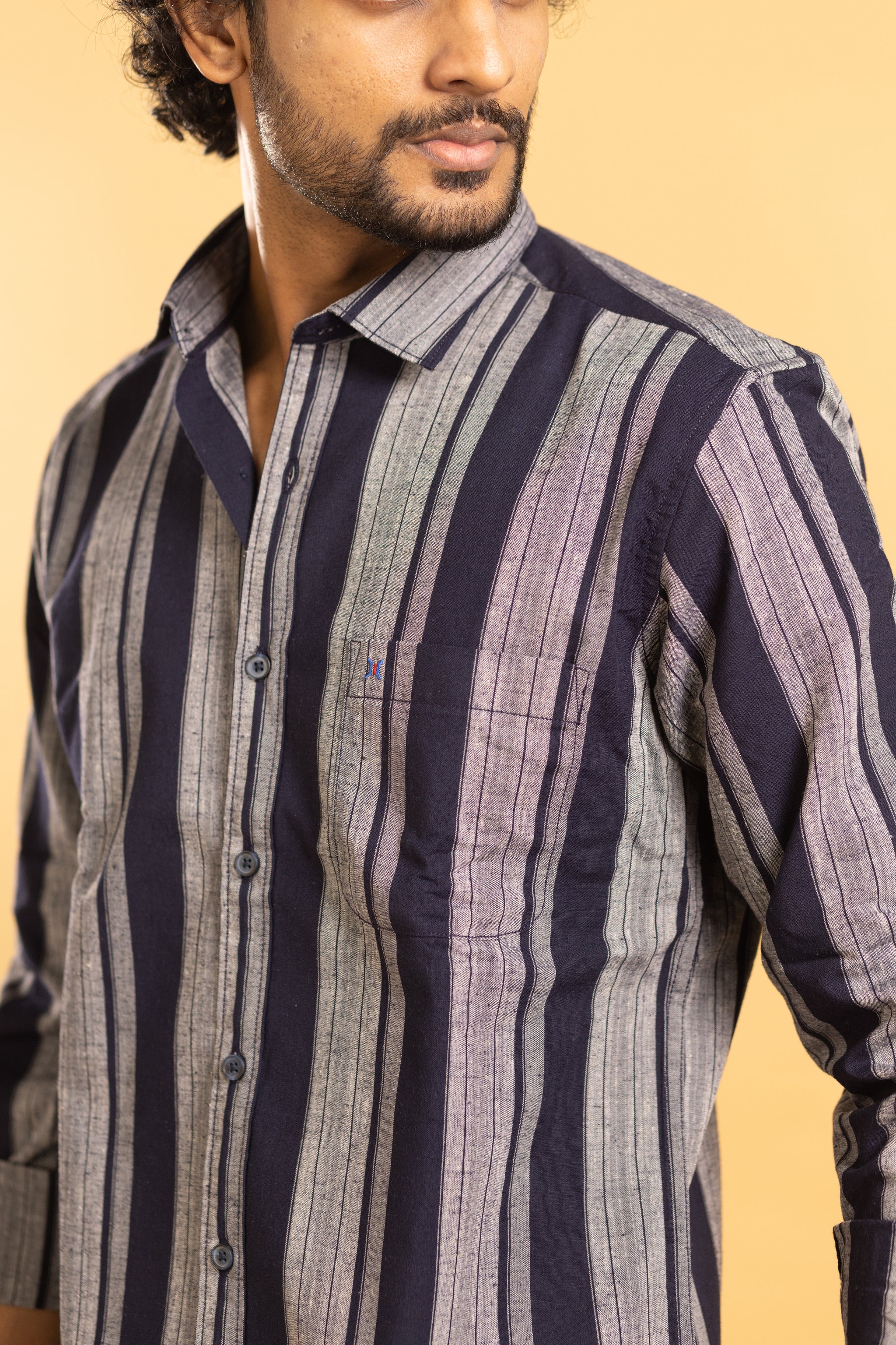 Elevate your wardrobe with this men's full sleeve checked shirt in a refined blue hue. Crafted for a tailored fit, it combines classic patterns with modern sophistication, perfect for both office wear and casual outings. The breathable fabric ensures comfort throughout the day, while the timeless check design adds a subtle yet polished touch to your look.