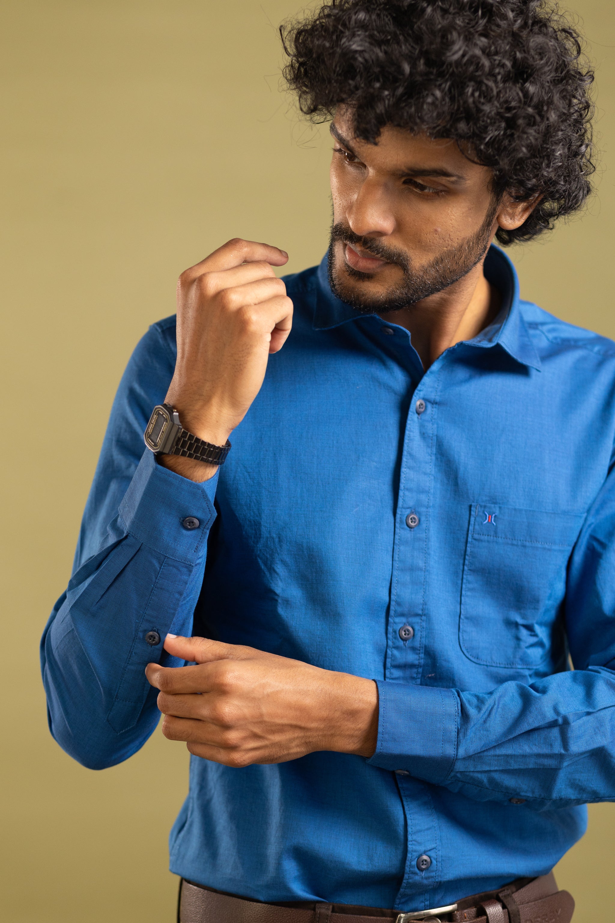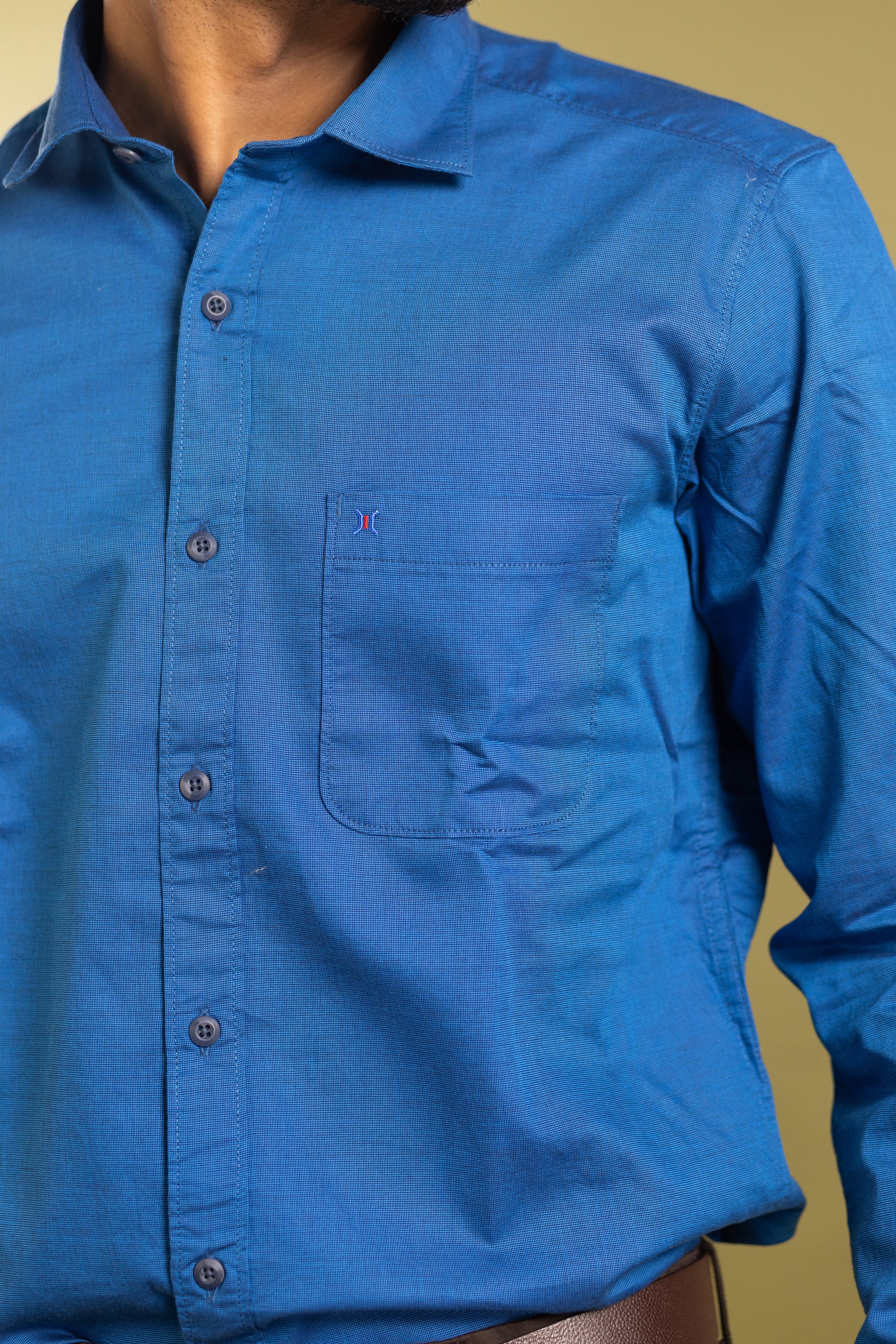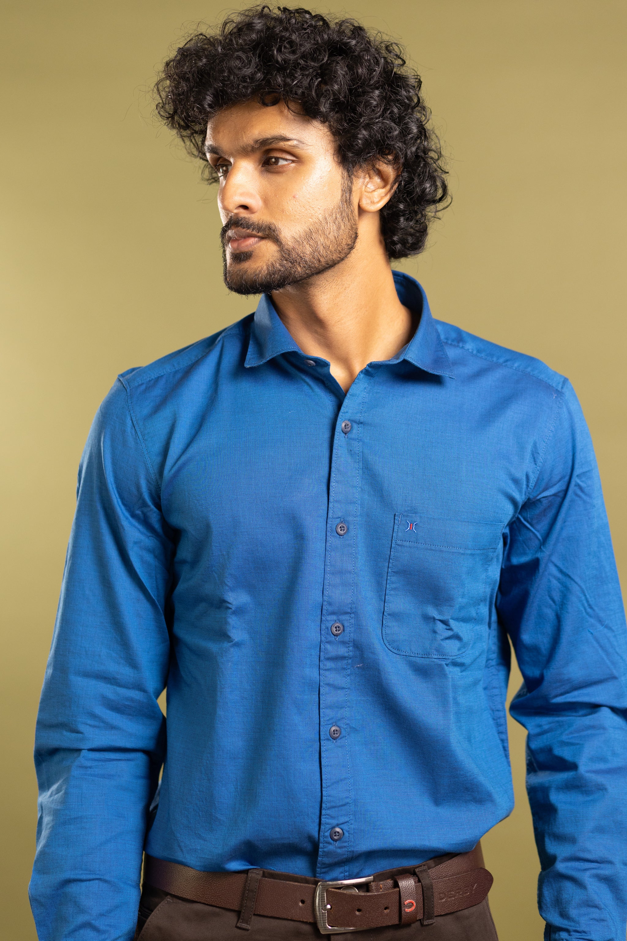 Elevate your wardrobe with this men's full sleeve solid shirt in royal blue. Crafted for a refined look, its rich hue adds a touch of elegance suitable for both formal and casual settings. The tailored fit ensures comfort and style throughout the day, making it a versatile choice for the modern man.
