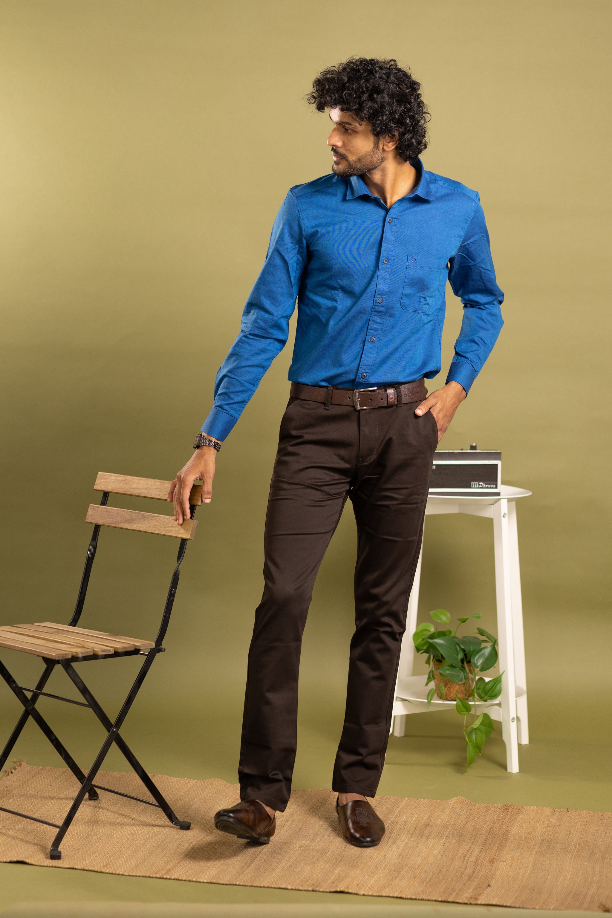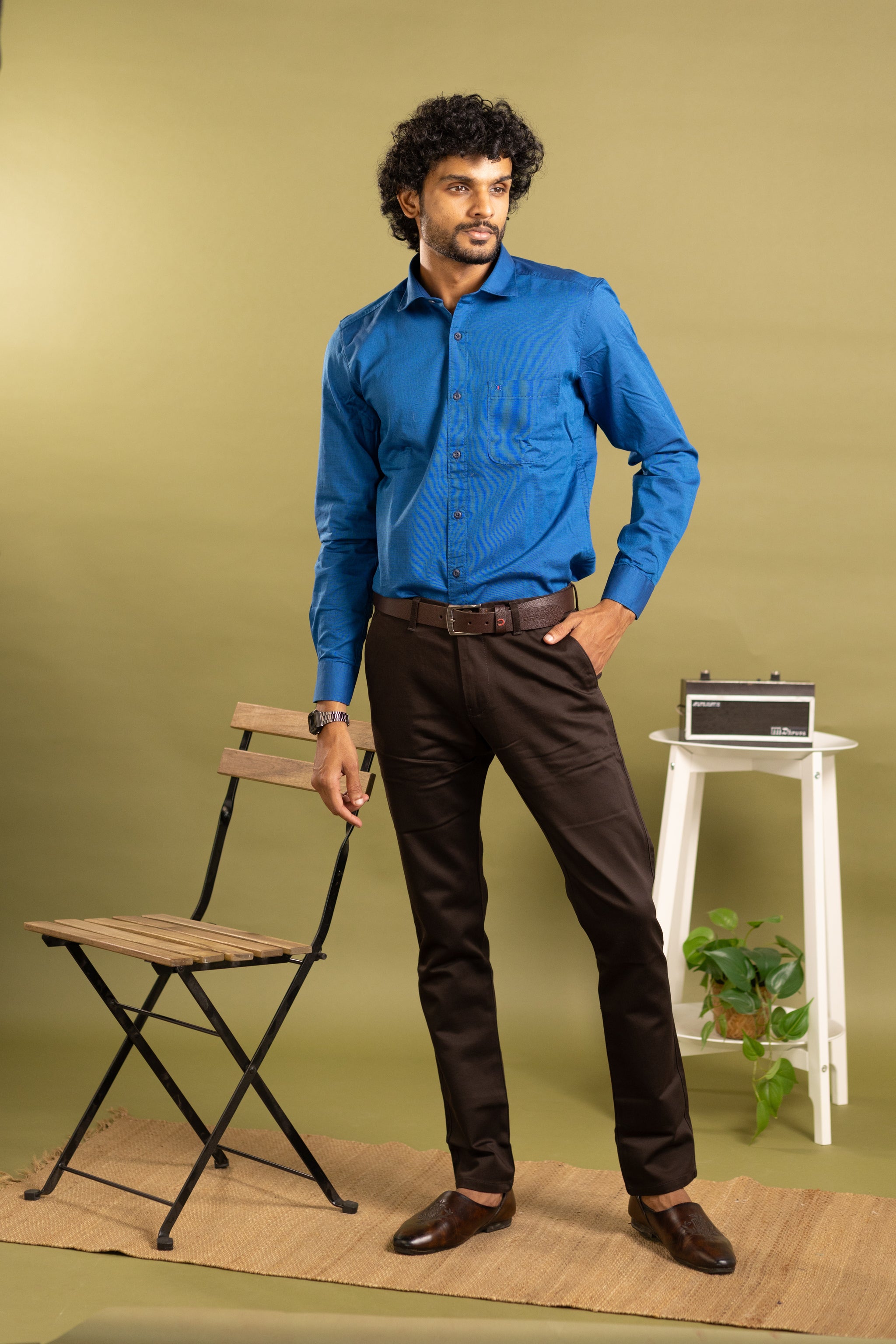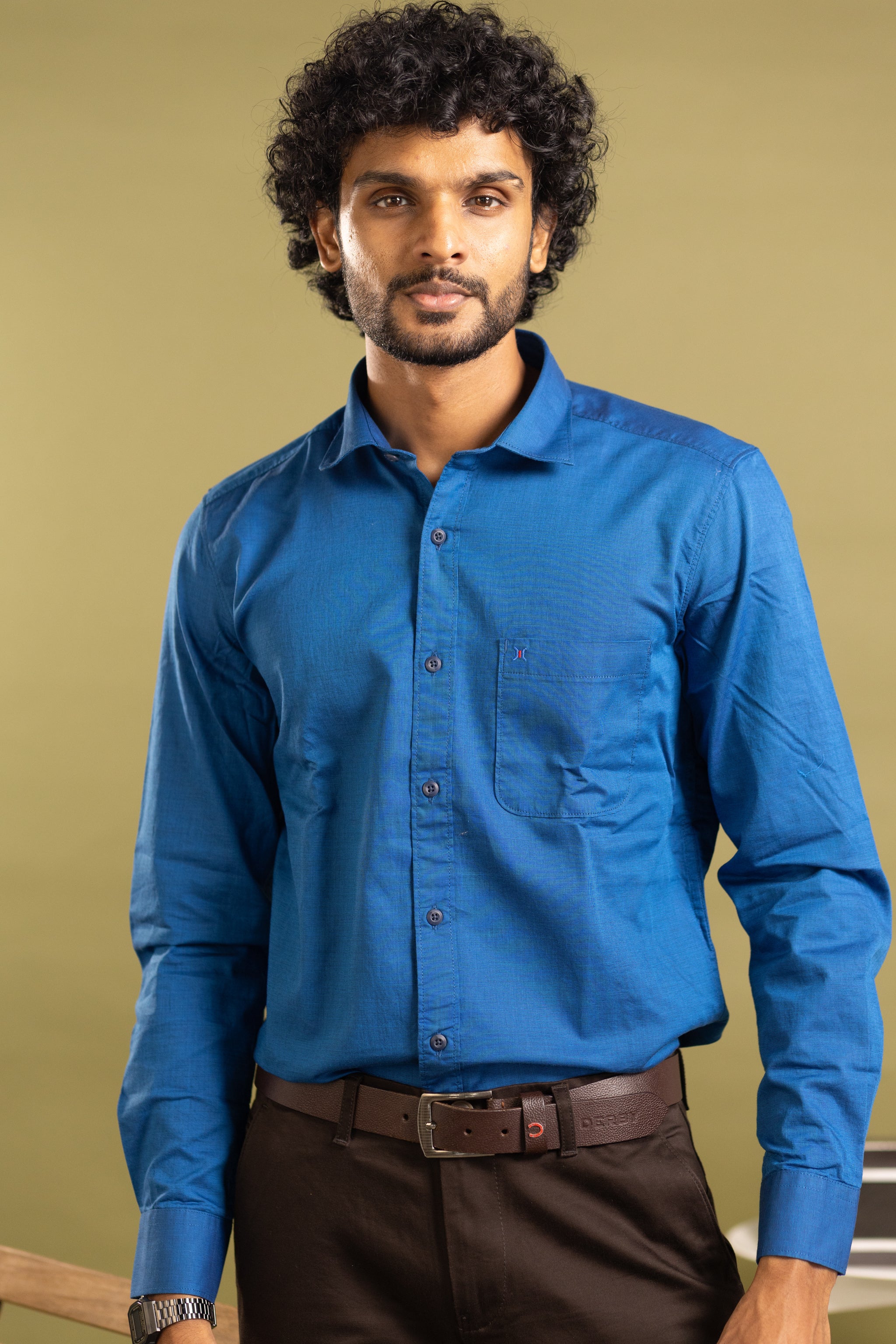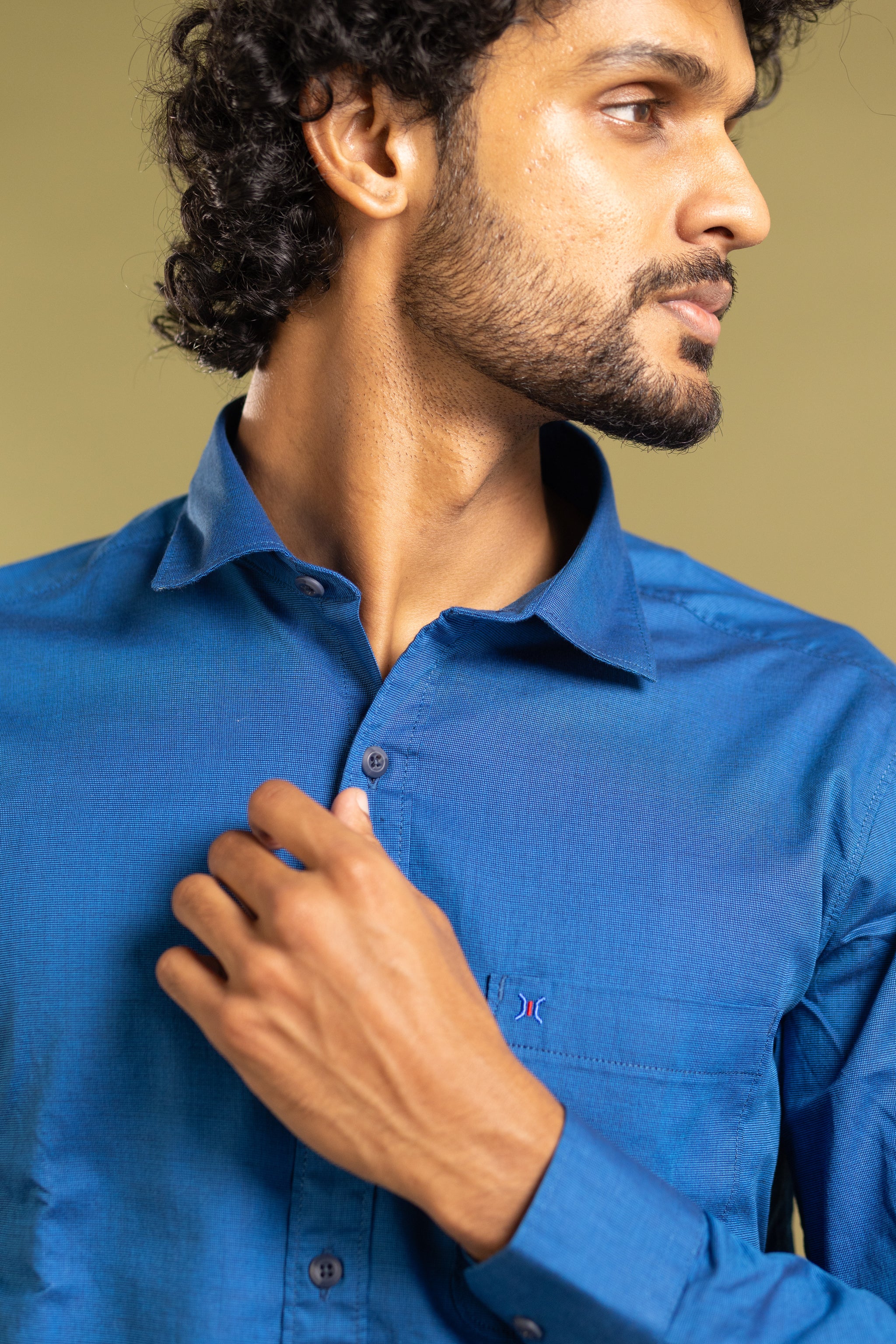 Elevate your wardrobe with this men's full sleeve solid shirt in royal blue. Crafted for a refined look, its rich hue adds a touch of elegance suitable for both formal and casual settings. The tailored fit ensures comfort and style throughout the day, making it a versatile choice for the modern man.