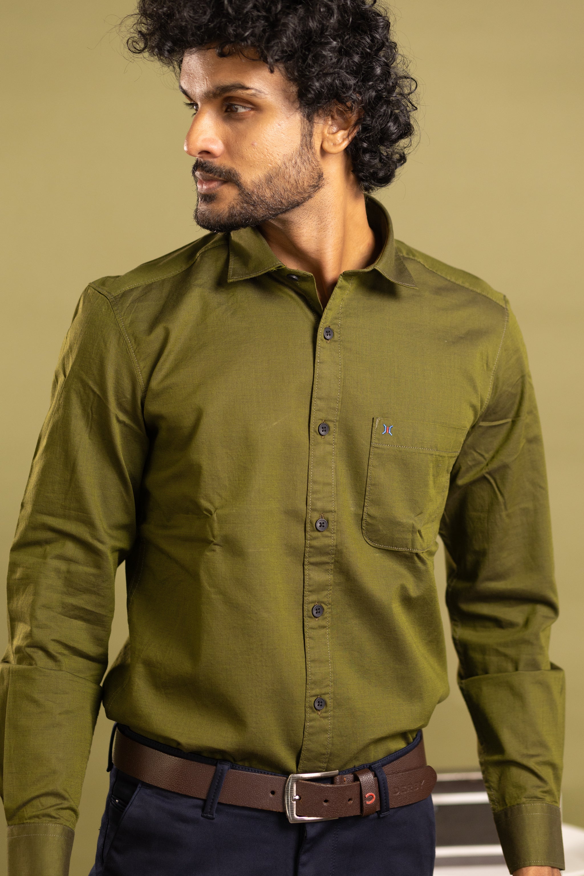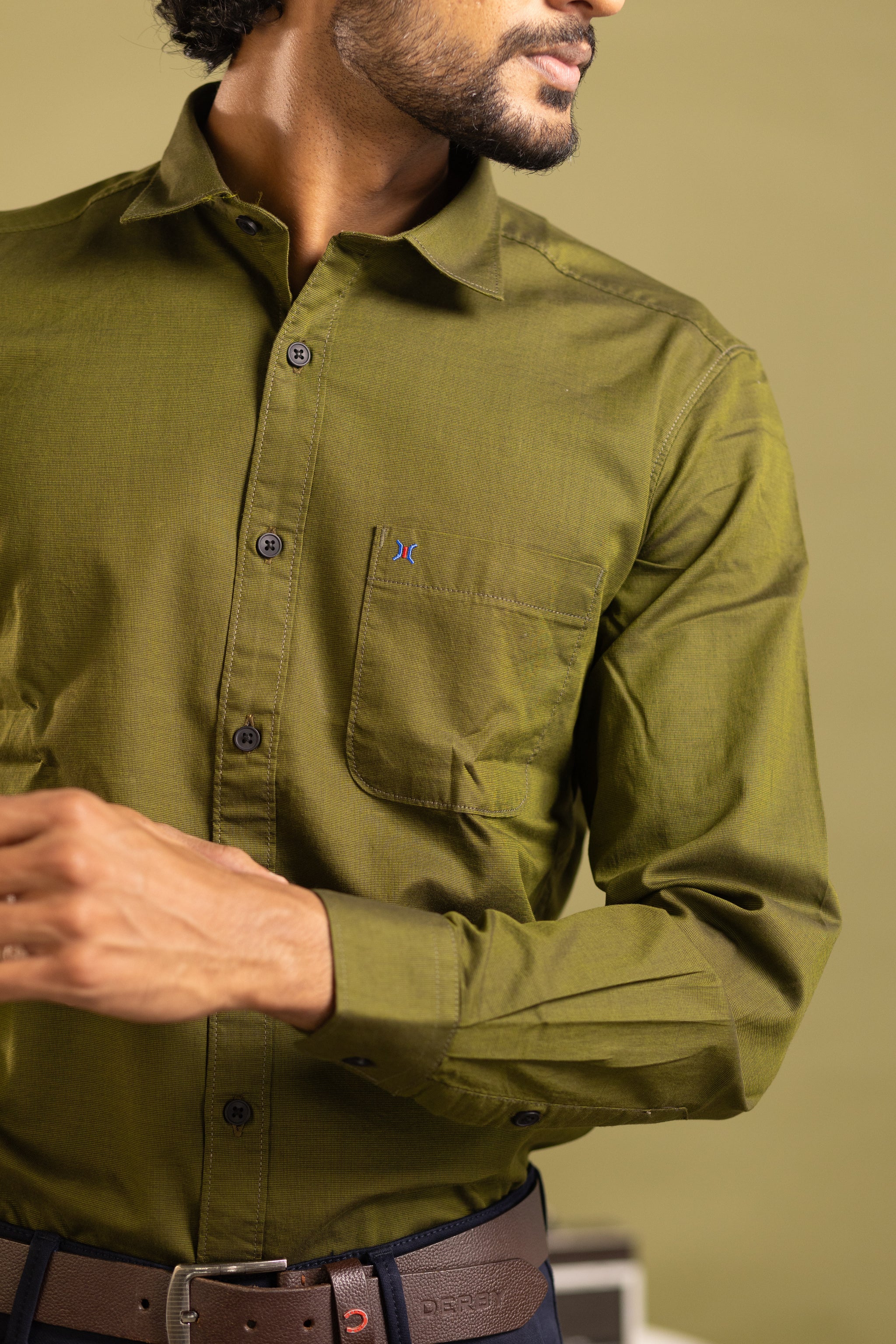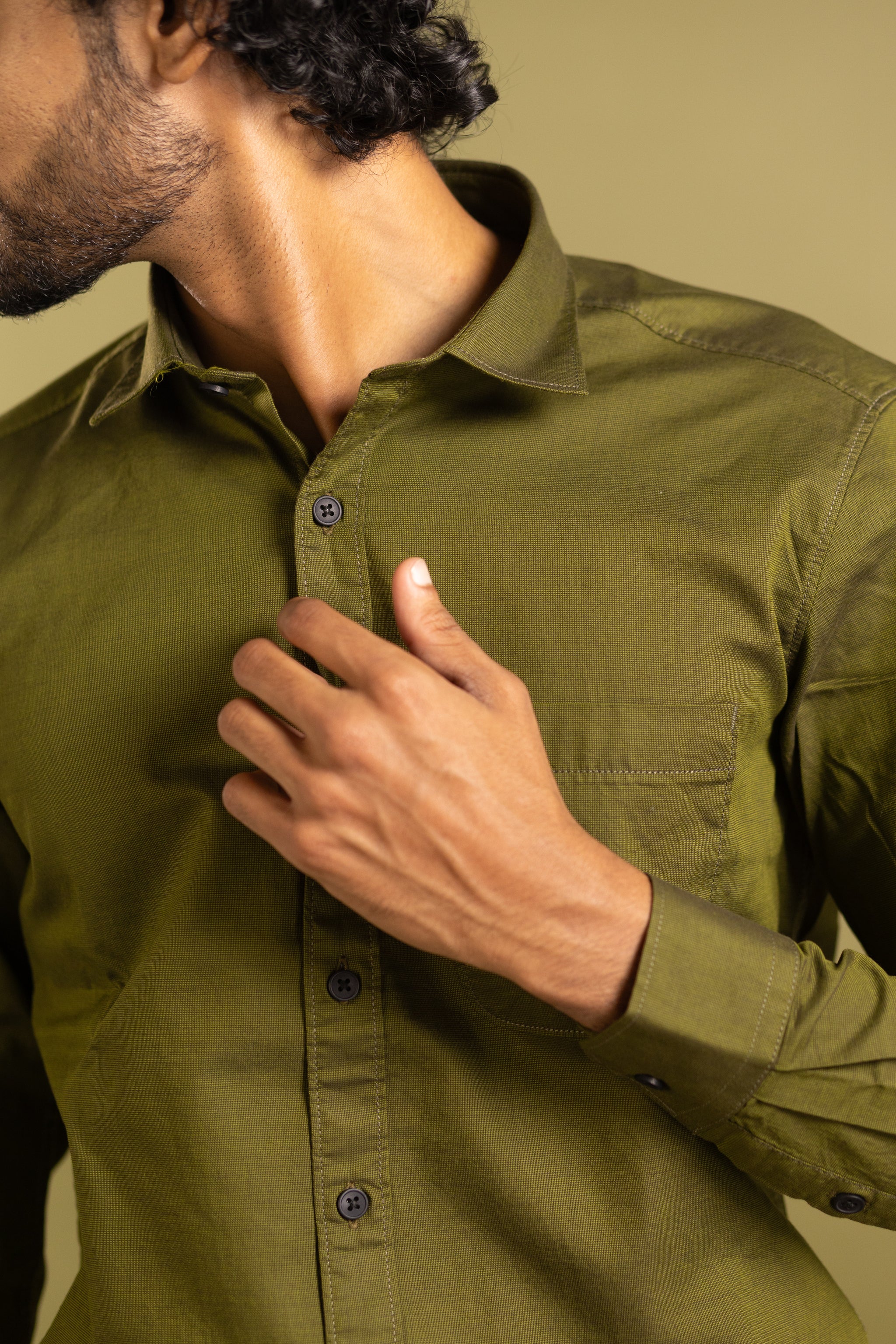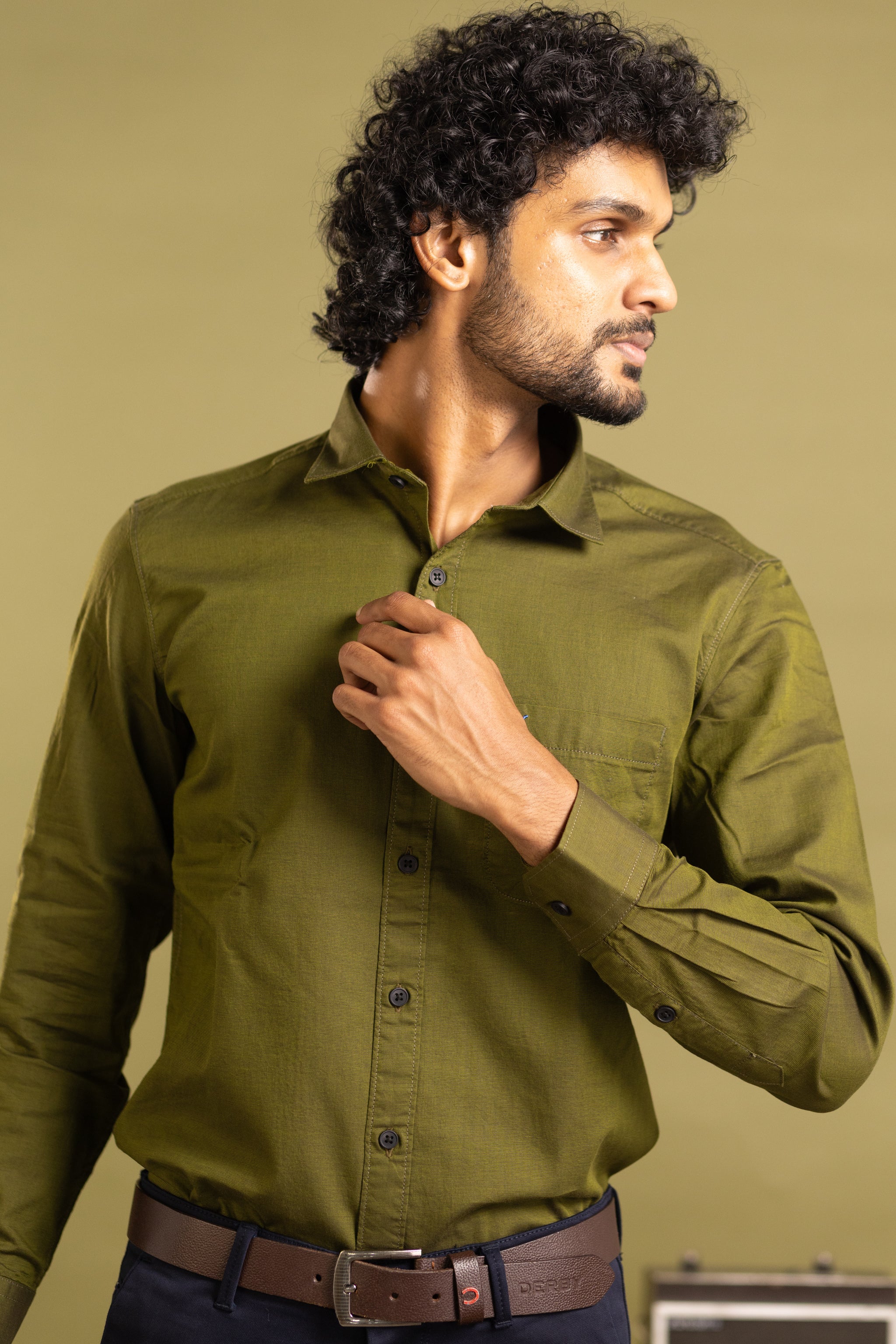 Elevate your wardrobe with this sophisticated men's full sleeve solid shirt in a rich olive green hue. Expertly tailored for a refined fit, it offers timeless style and comfort perfect for both formal and smart-casual occasions. The subtle solid color provides versatile pairing options, making it an essential piece for any discerning gentleman’s collection.