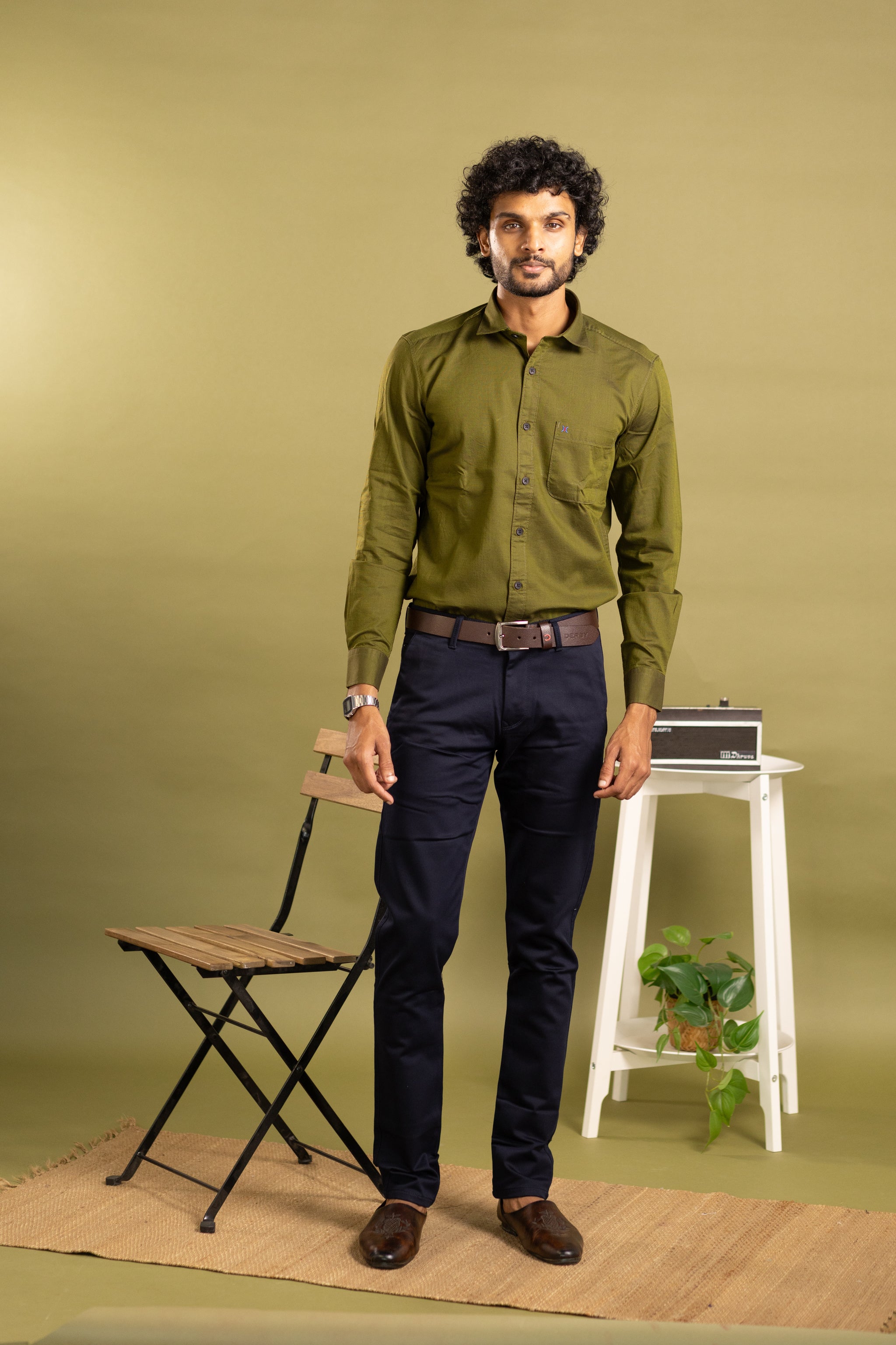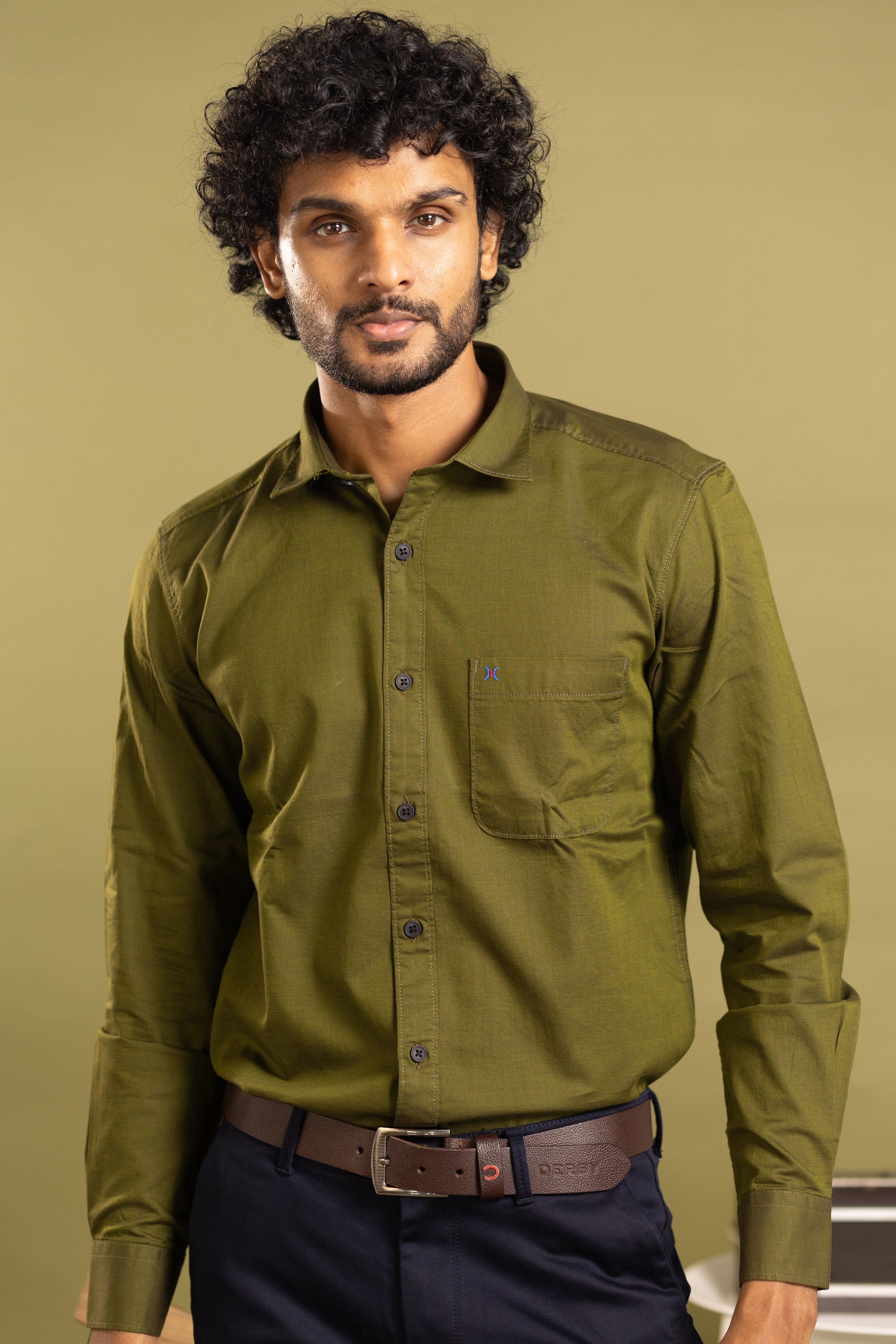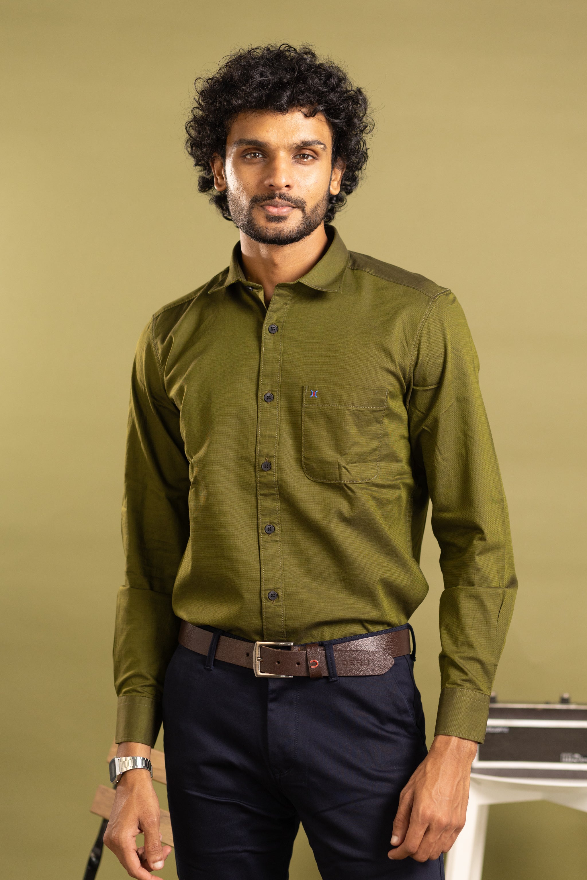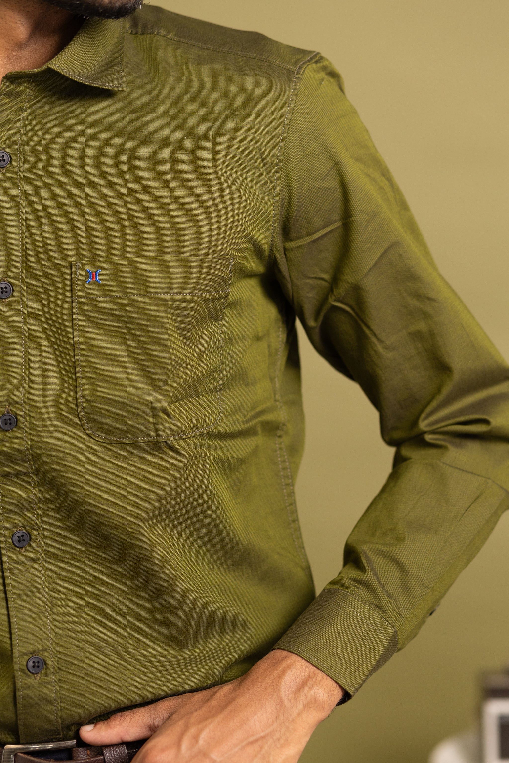 Elevate your wardrobe with this sophisticated men's full sleeve solid shirt in a rich olive green hue. Expertly tailored for a refined fit, it offers timeless style and comfort perfect for both formal and smart-casual occasions. The subtle solid color provides versatile pairing options, making it an essential piece for any discerning gentleman’s collection.