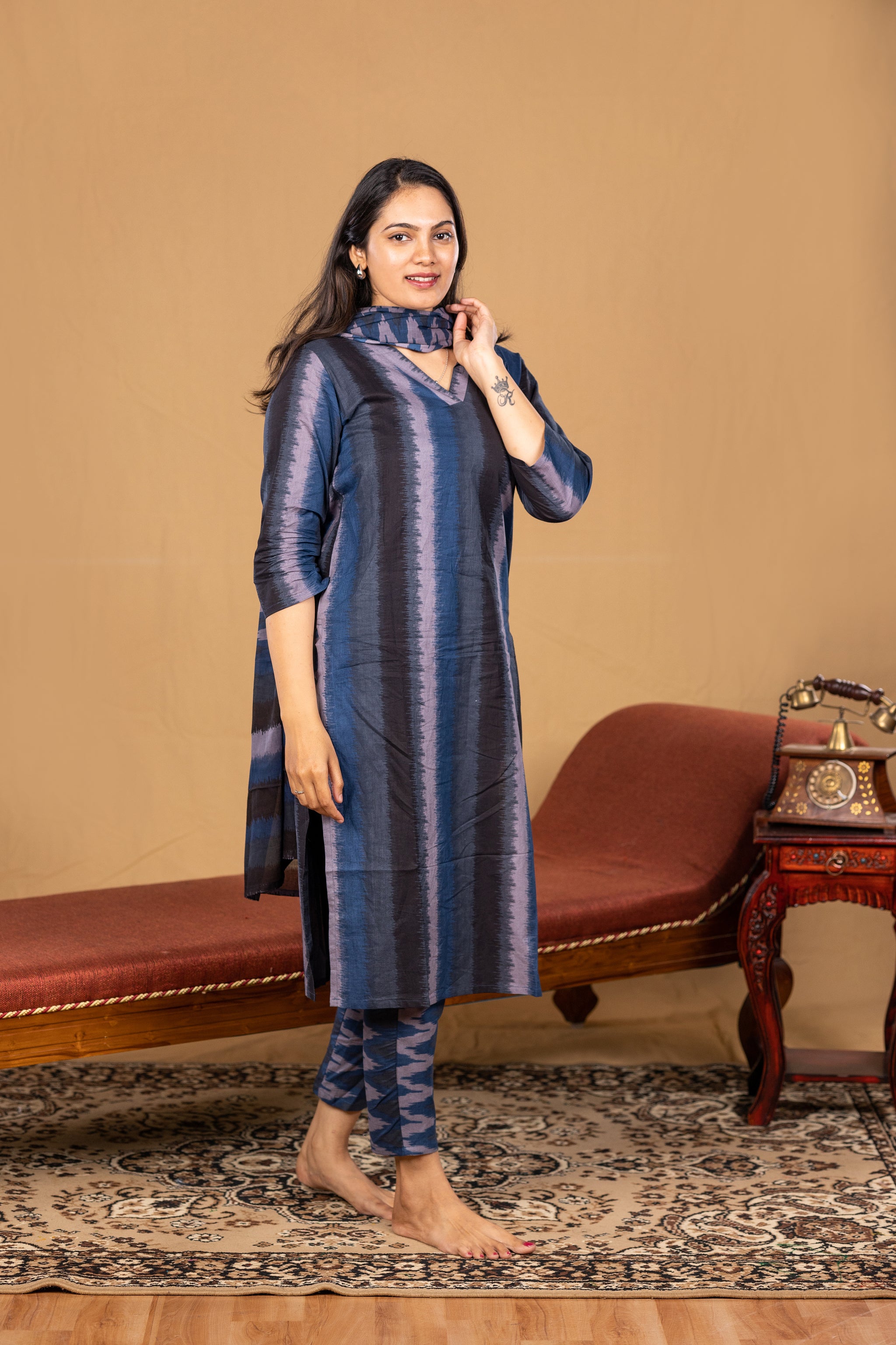 Elevate your ethnic collection with the Yalini salwar set in blue. Crafted to blend traditional charm with contemporary elegance, this set offers a refined silhouette and comfortable fit. The rich blue hue adds depth and sophistication, making it perfect for festive occasions or formal gatherings. Experience timeless style with every wear.