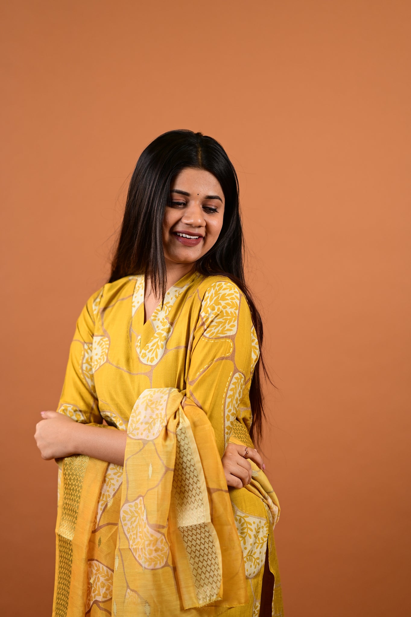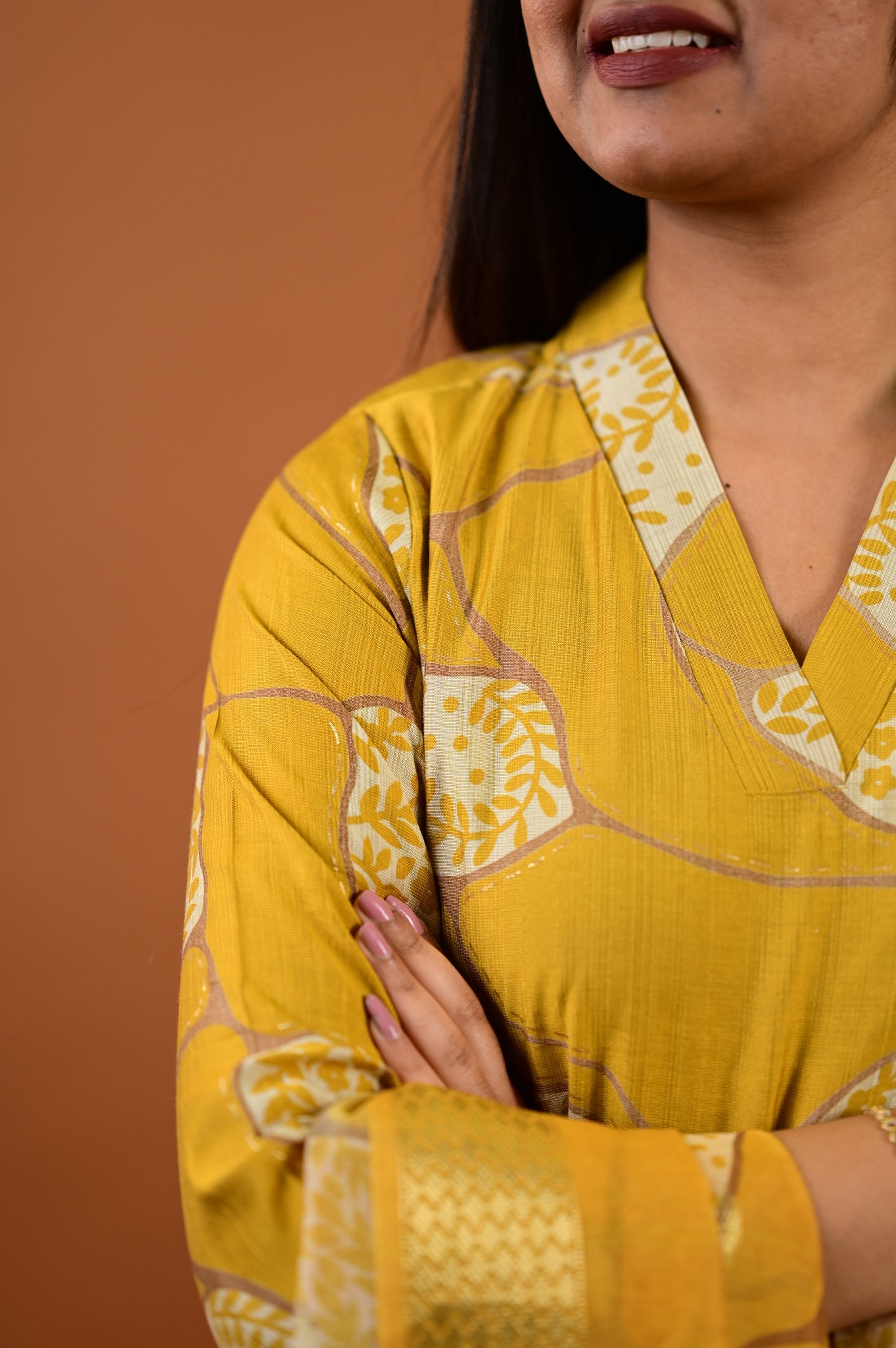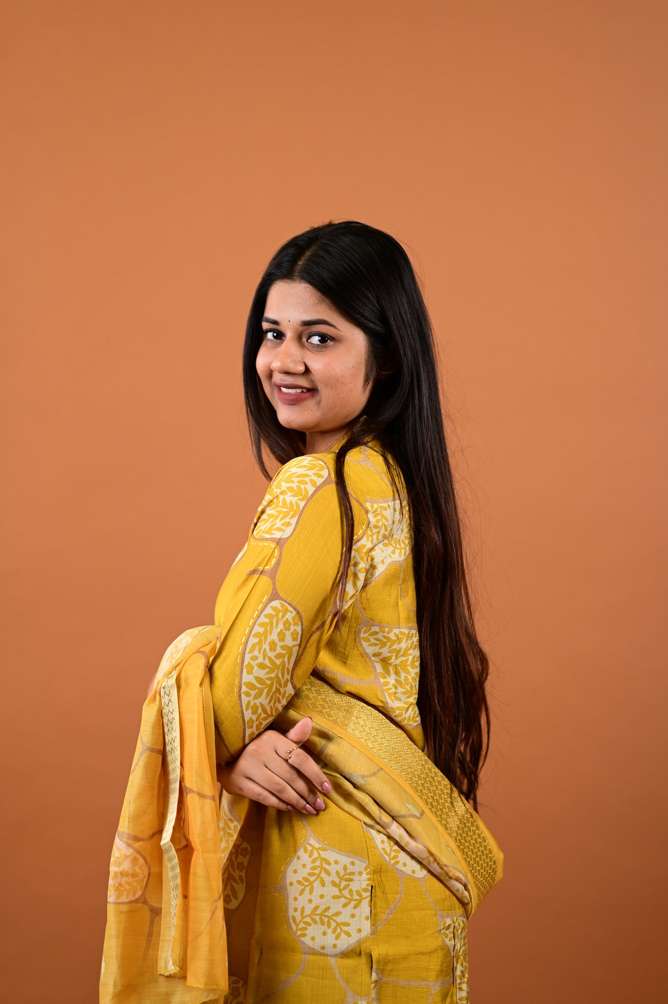 Introducing the Ziya salwar set, a refined ensemble in warm mustard yellow that captures timeless elegance. Adorned with delicate vertical flower motifs, this piece showcases meticulous craftsmanship in premium fabric. The thoughtfully lined construction ensures comfort and durability, allowing you to move with confidence throughout your day. Perfect for celebrations, gatherings, or elevating your everyday wardrobe, this salwar set seamlessly blends traditional artistry with contemporary sophistication.